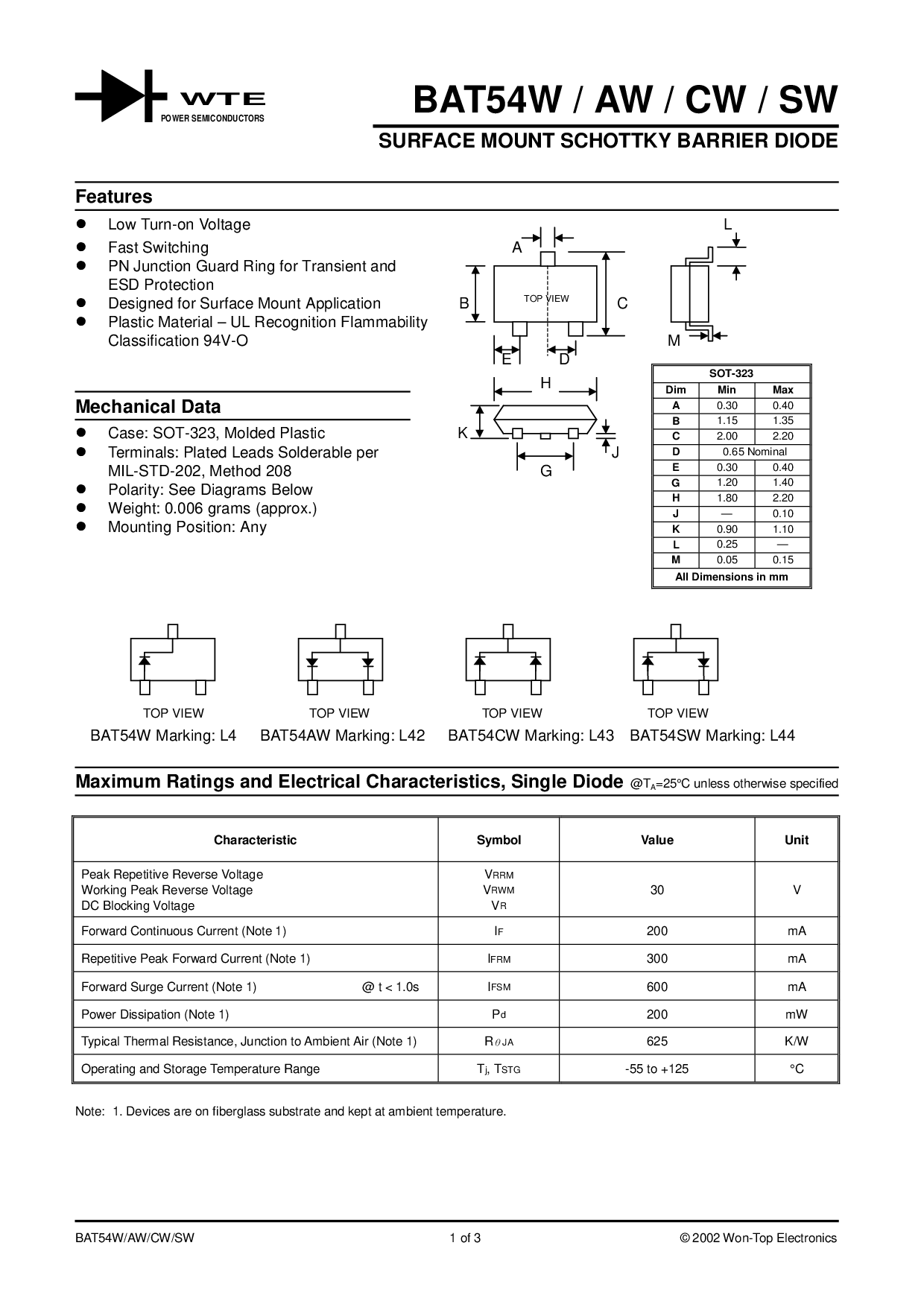 bat54w/aw/cw/软件 1 的 3 © 2002 韩元-顶部 电子产品