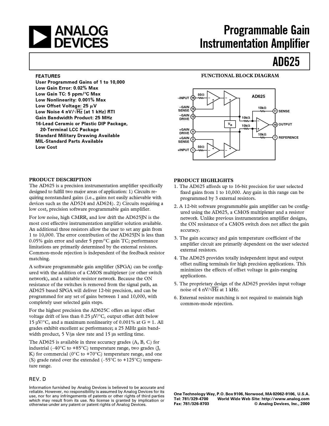 传真: 781/326-8703 © 模拟 设备, 股份有限公司., 2000
