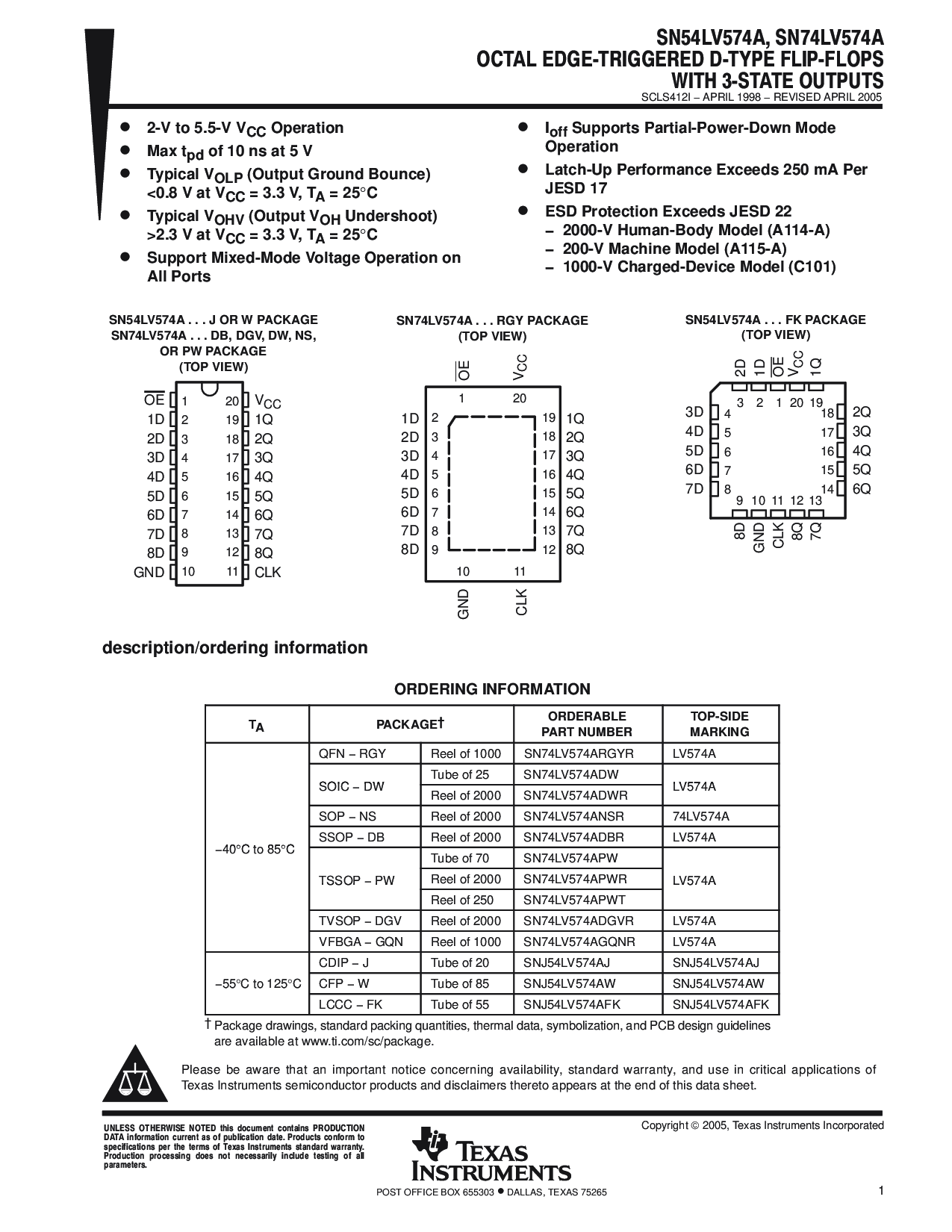 浏览型号SN74LV574APWTE4的Datasheet PDF文件第3页