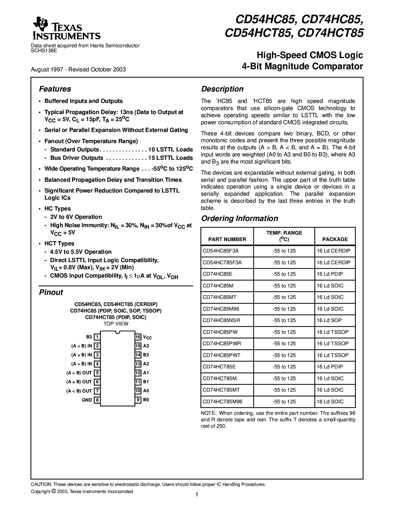 cd74hc85 (pdip, soic, sop, tssop)