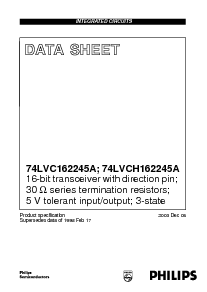 dat一个shEET 产品 Speci 取代 数据 的 1998 二月 17 2003 12月 08 综合 电路 74lvc162245a; 74LVCH162245A 16-有点 收发器 与 方向 管脚; 30 Ω 系列 终止 电阻; 5 v 宽容 输入/输出; 3-州 | |