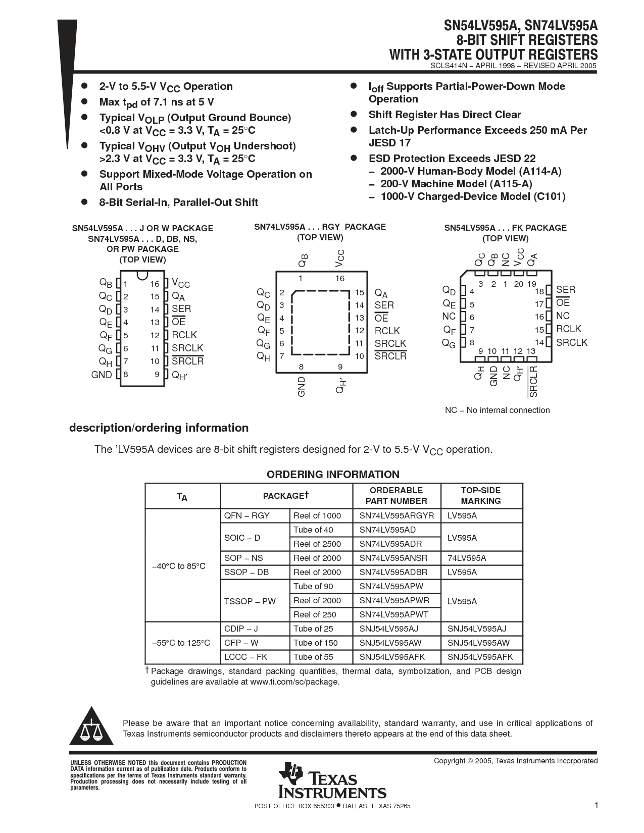 这 ’lv595a 设备 是 8-有点 轮班 寄存器 设计 用于 2-v 至 5.5-v v