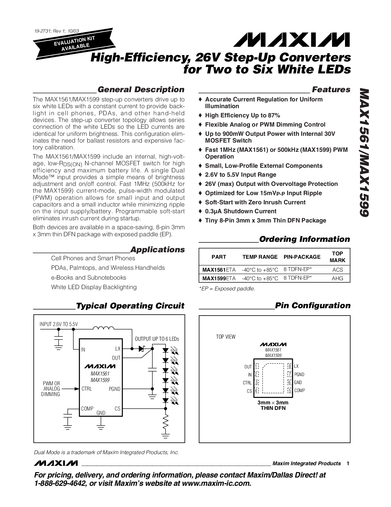 1-888-629-4642, 或 参观 马克西姆’s 网站 在 www.马克西姆-集成电路.com.