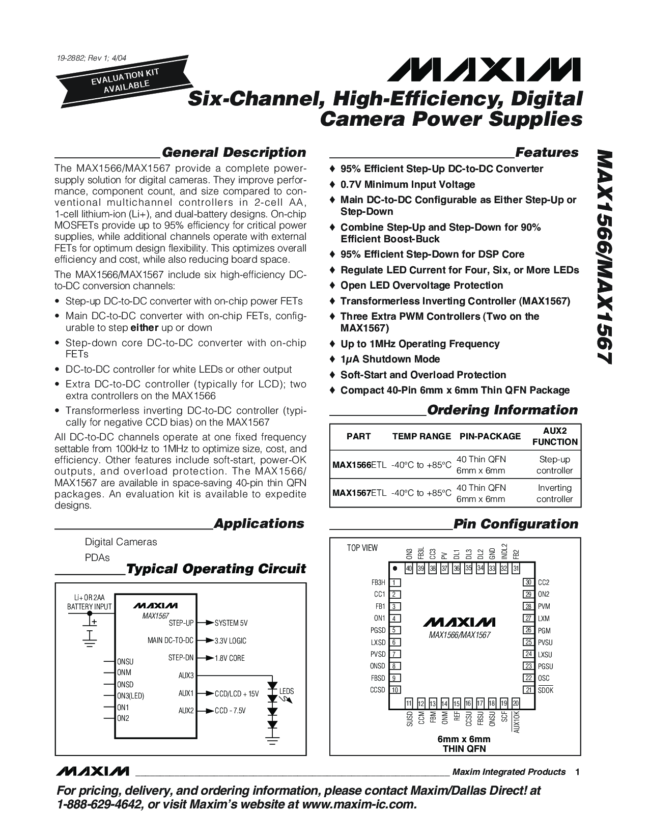 max1567 是 可用 入点 节省空间 40-管脚 薄 qfn