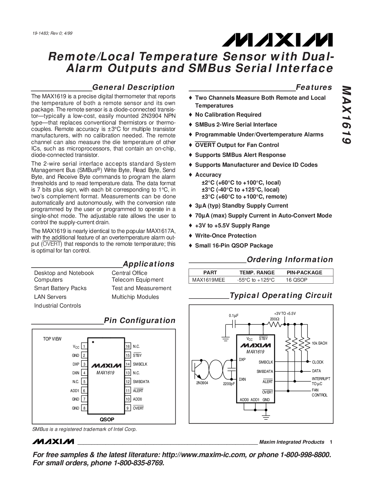 这 max1619 是 一个 精确 数字 温度计 那 报告