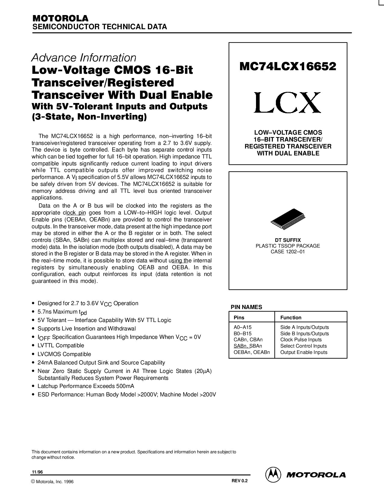 这 mc74lcx16652 是 一个 高 业绩, 非反相 16–bit
