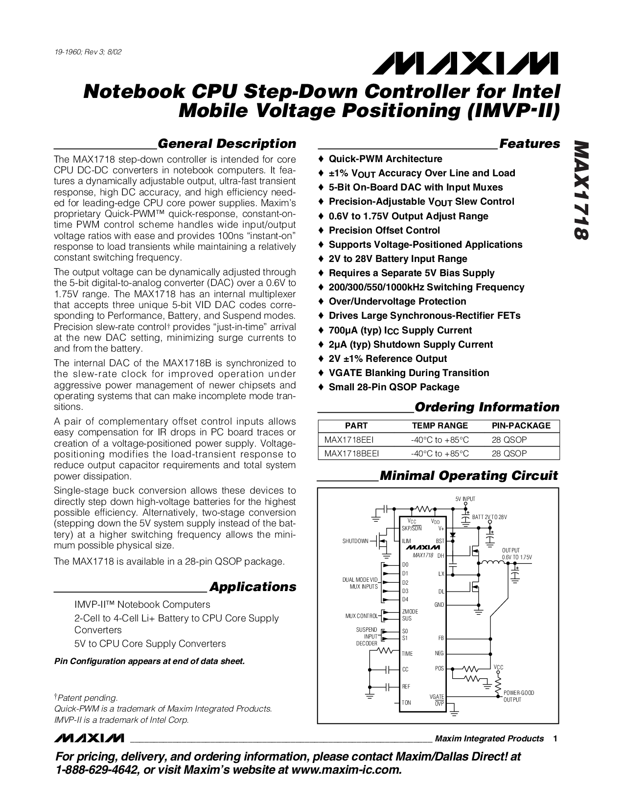 这 max1718 是 可用 入点 一个 28-管脚 qsop 包装.