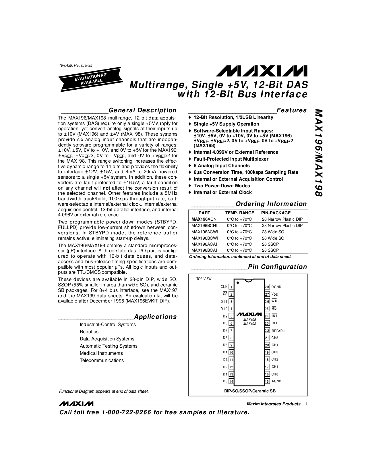 这 max196/max198 multirange, 12-有点 数据-acquisi-