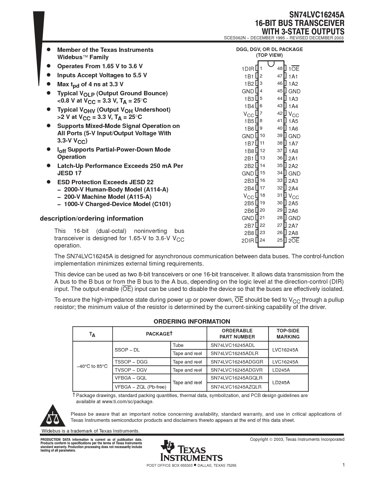 tssop − dgg 胶带 和 卷轴 SN74LVC16245ADGGR LVC16245A