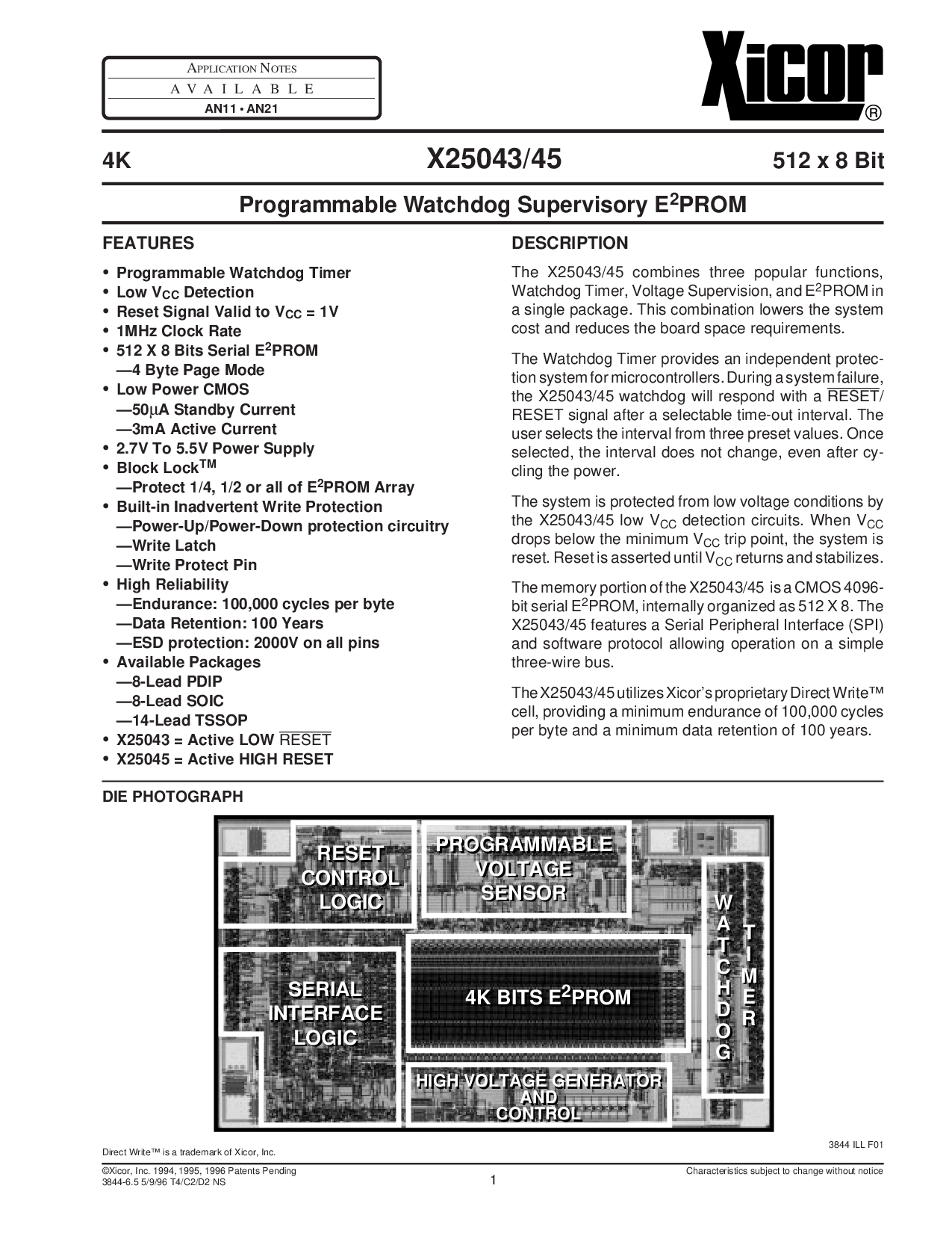 这 x25043/45 利用 xicor’s 专有 直接 write™