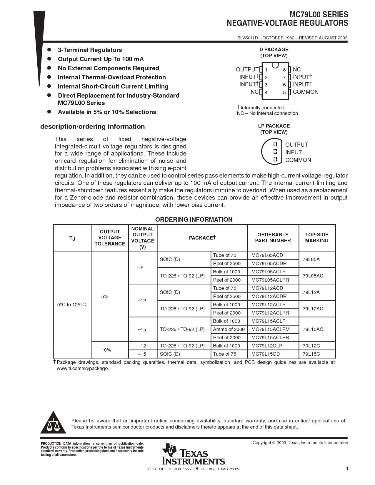 –12 至-226 / 至-92 (lp) 散装 的 1000 MC79L12CLP 79L12C