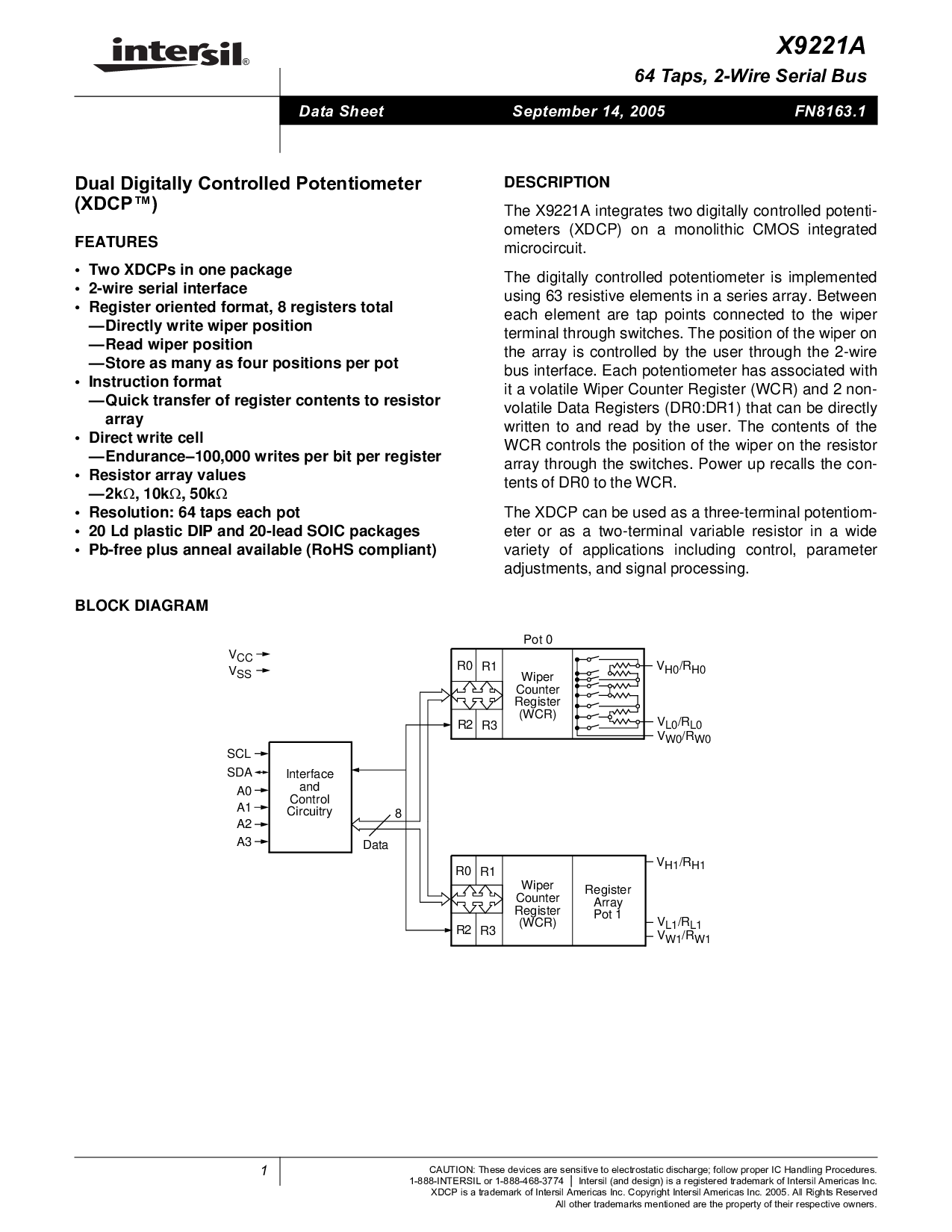 浏览型号X9221AWSZ的Datasheet PDF文件第2页