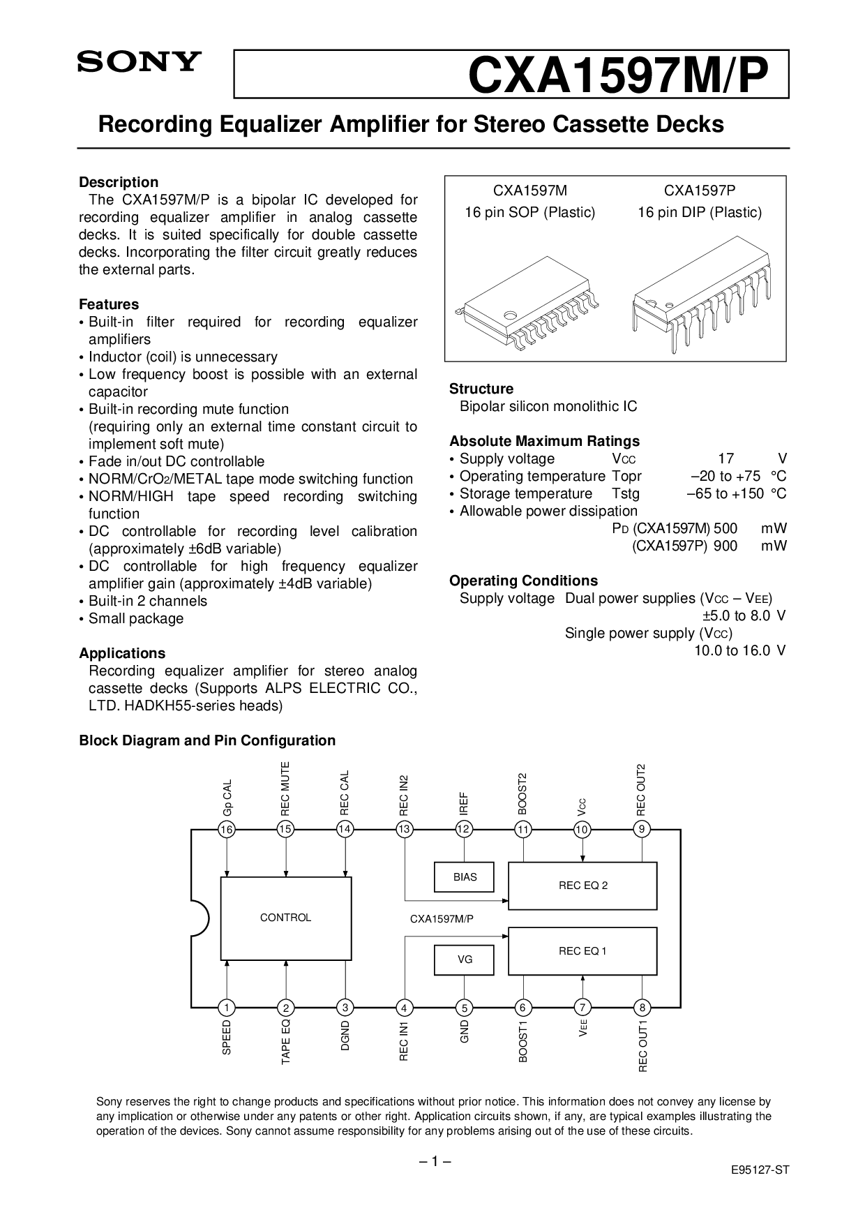 这 cxa1597m/p 是 一个 双极性 集成电路 已开发 用于