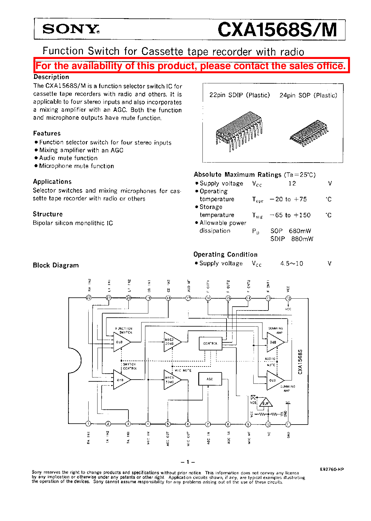浏览型号CXA1568M的Datasheet PDF文件第2页