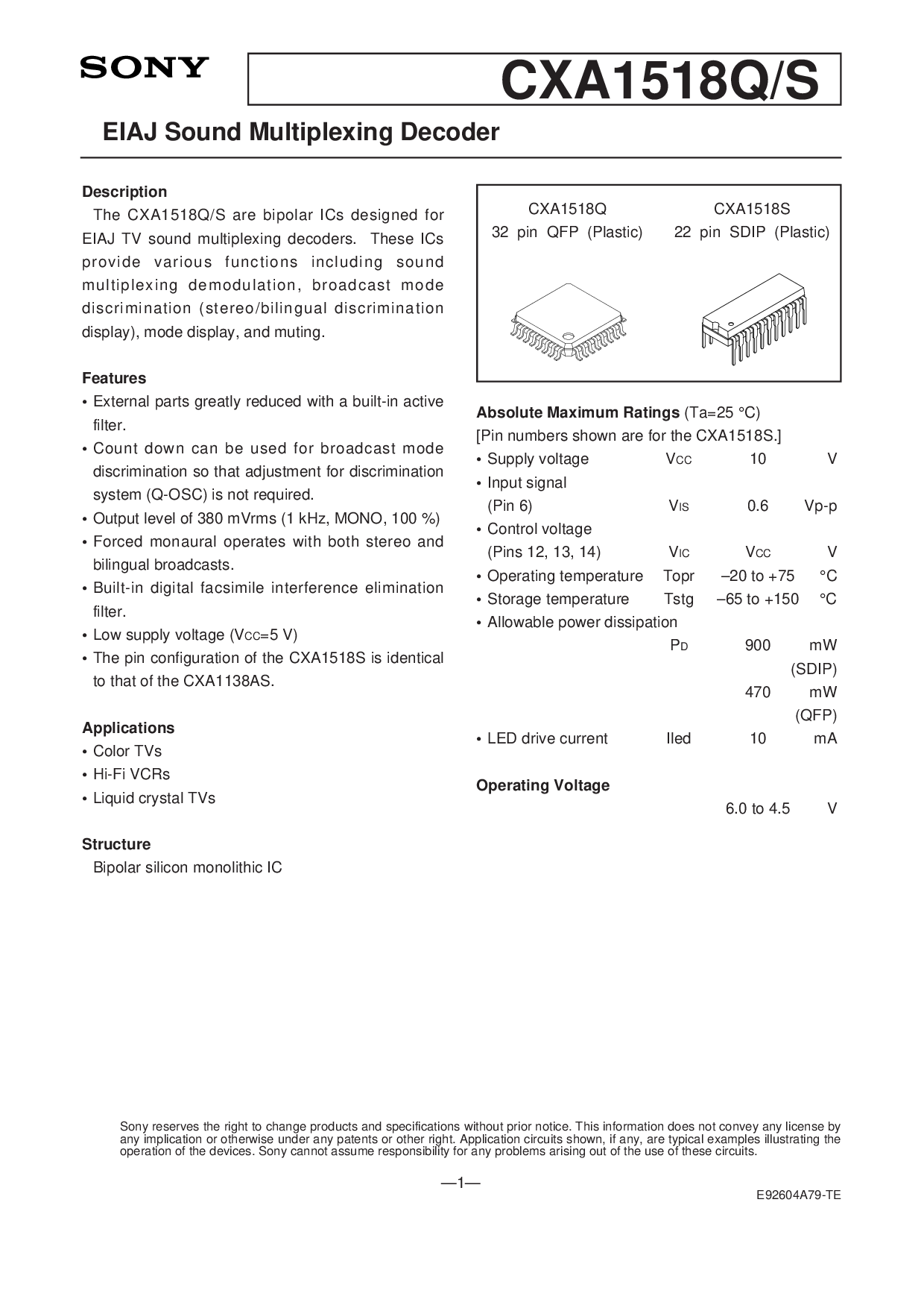 CXA1518Q CXA1518S