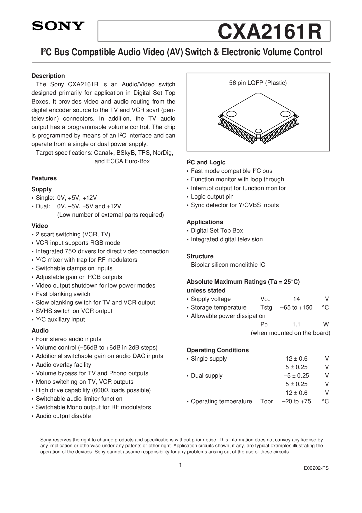 这 sony cxa2161r 是 一个 音频/视频 开关
