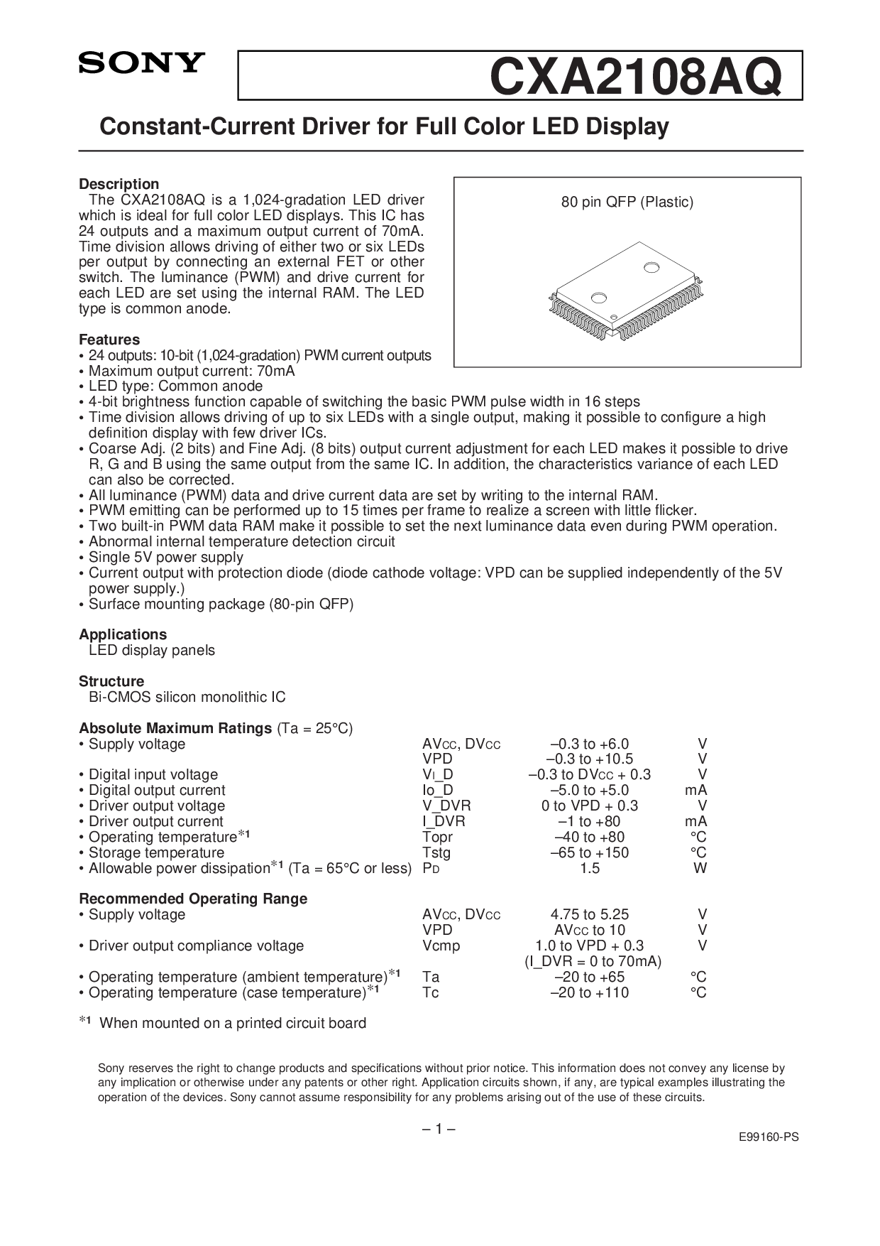 这 cxa2108aq 是 一个 1,024-gradation led指示灯 驾驶员