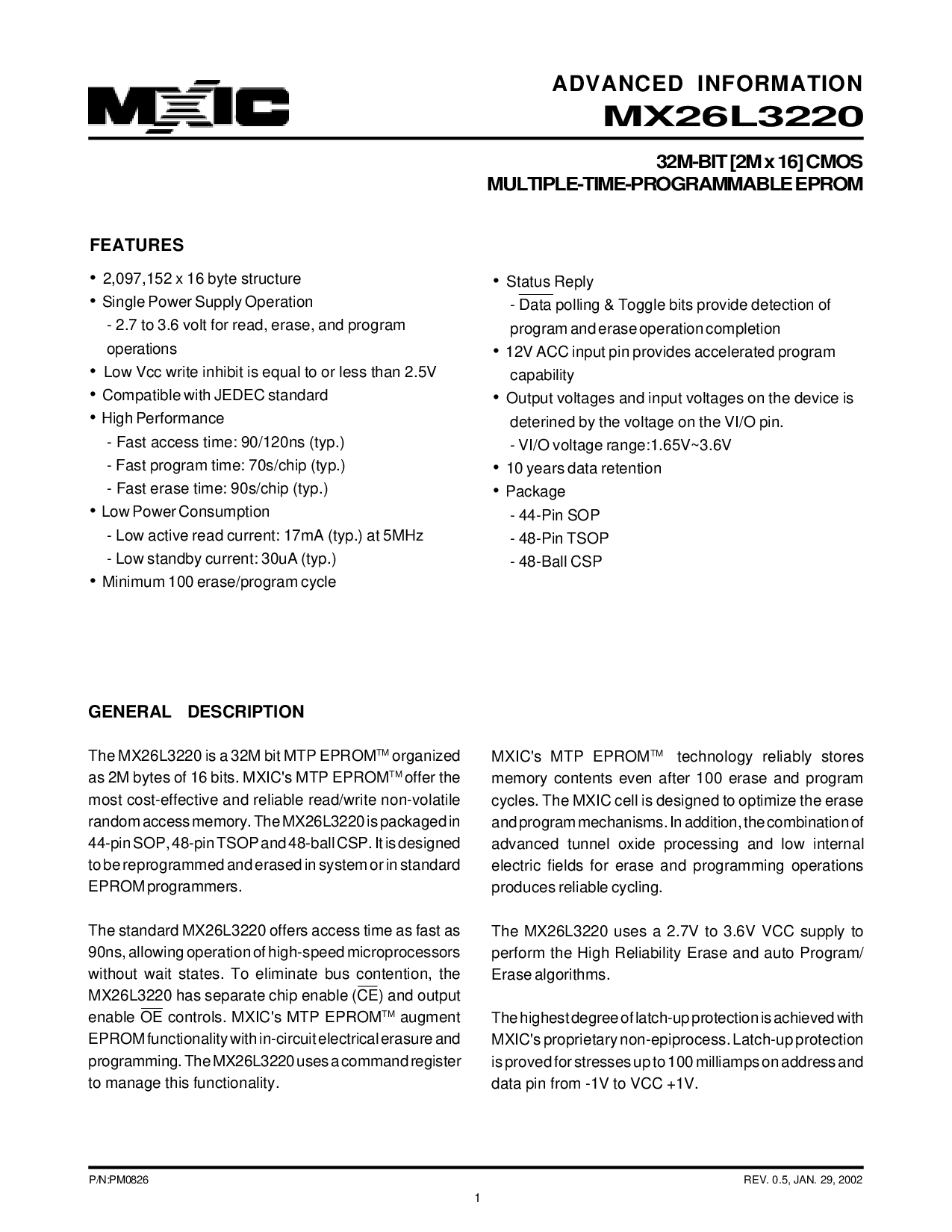 p/n:pm0826 rev. 0.5, jan. 29, 2002