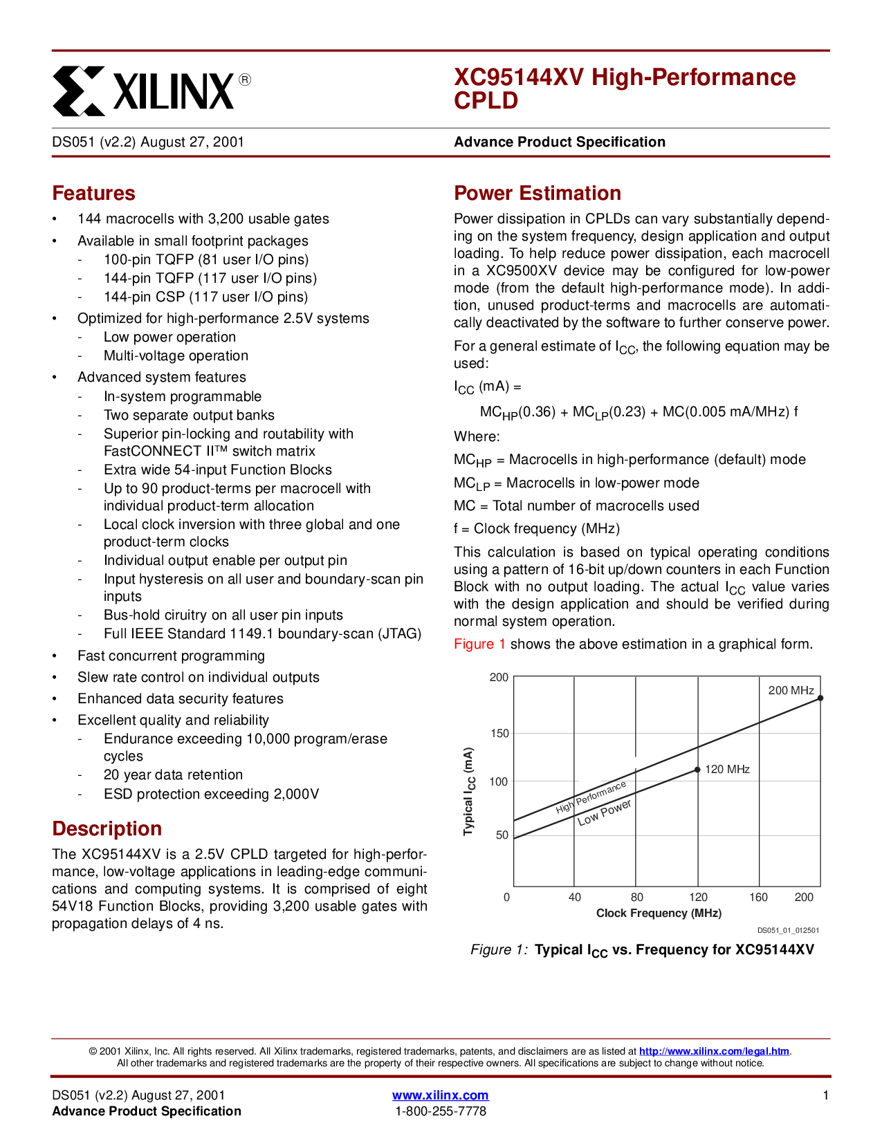 这 xc95144xv 是 一个 2.5v cpld 有针对性的 用于 高-perfor-