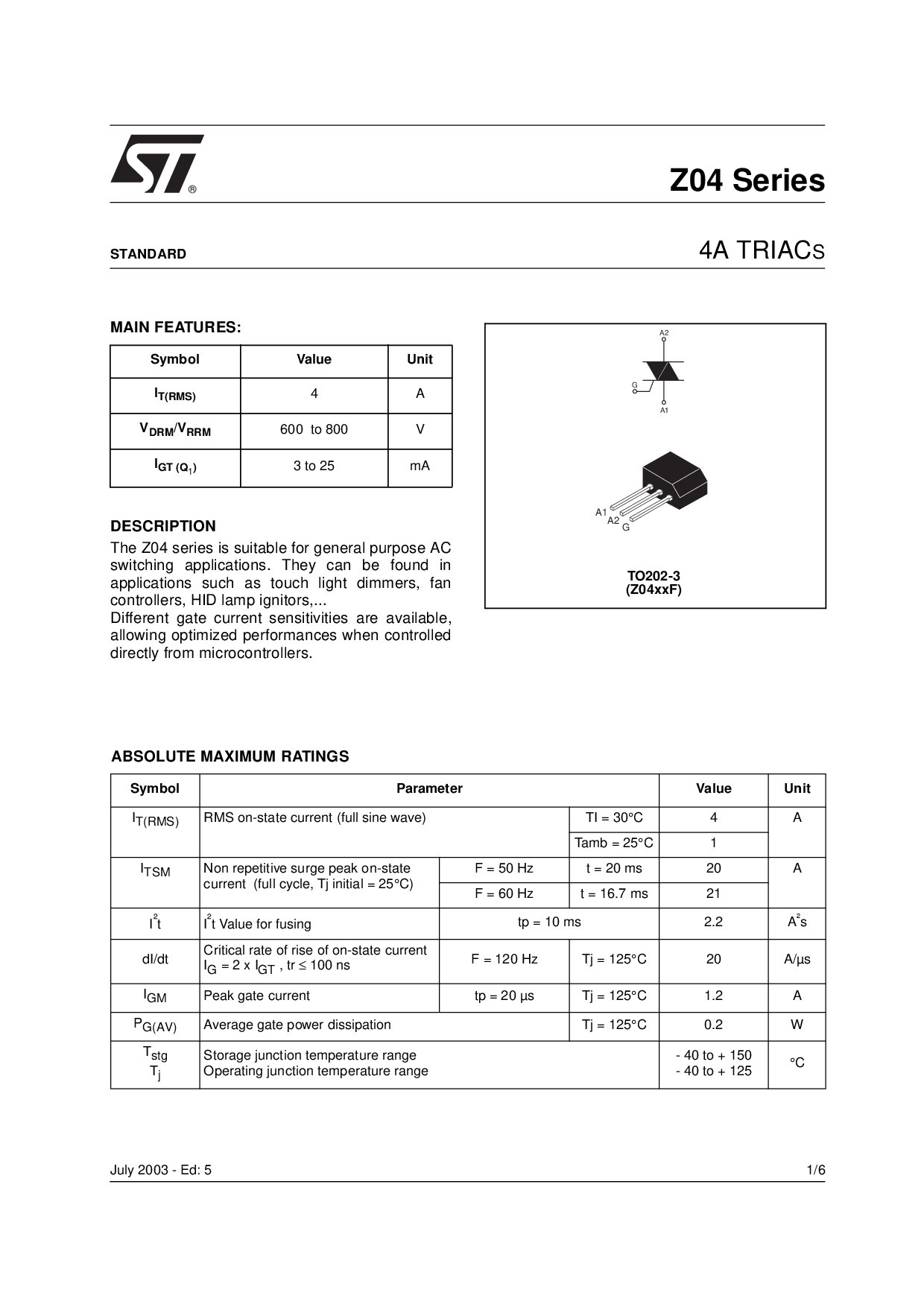 浏览型号Z0409SF1AA2的Datasheet PDF文件第5页