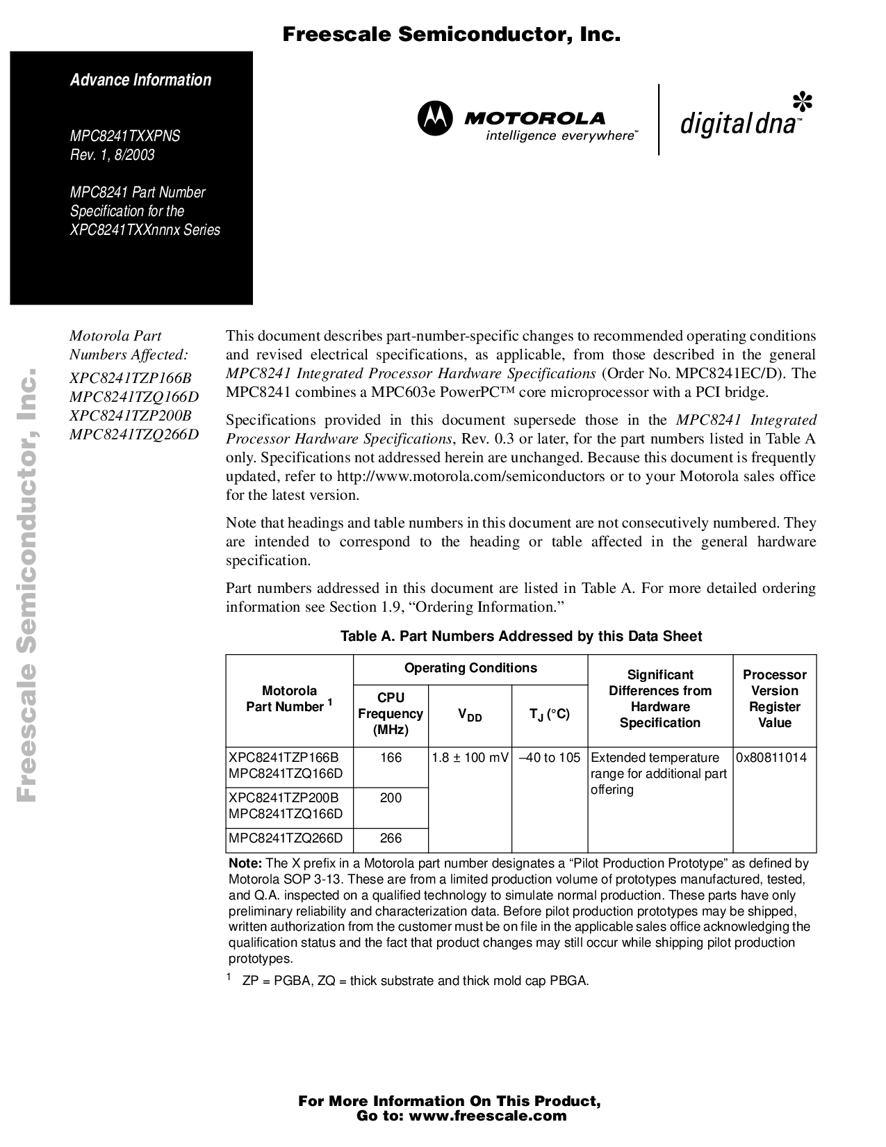 浏览型号MPC8241TZP200C的Datasheet PDF文件第3页