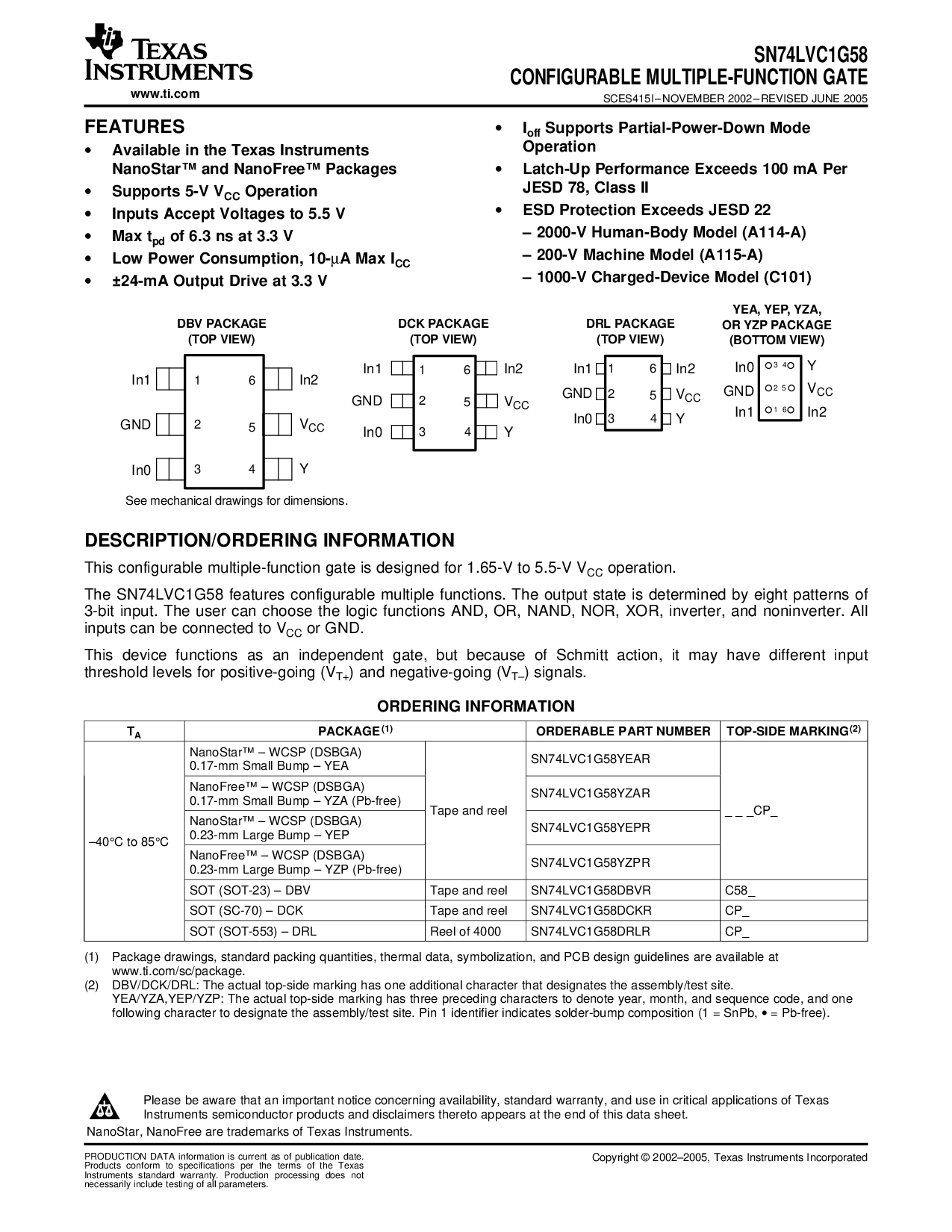 浏览型号SN74LVC1G58YZPR的Datasheet PDF文件第2页