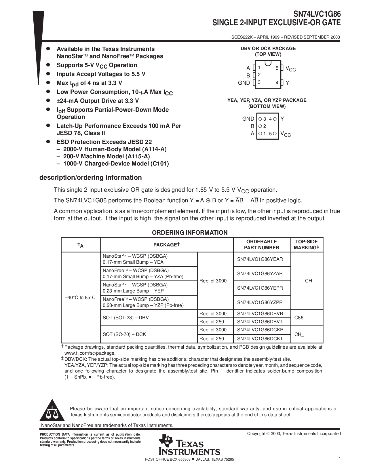 浏览型号SN74LVC1G86YZPR的Datasheet PDF文件第2页