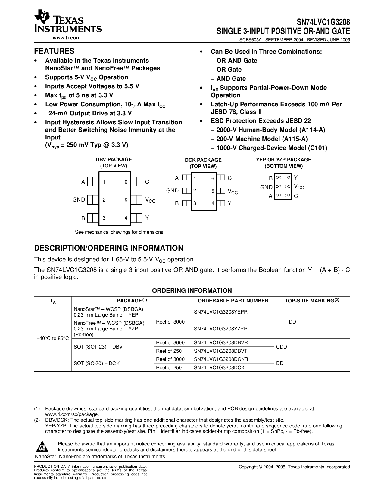 浏览型号SN74LVC1G3208YZPR的Datasheet PDF文件第6页