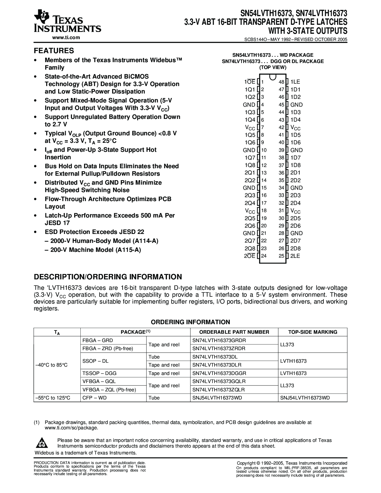 浏览型号SN74LVTH16373ZRDR的Datasheet PDF文件第2页
