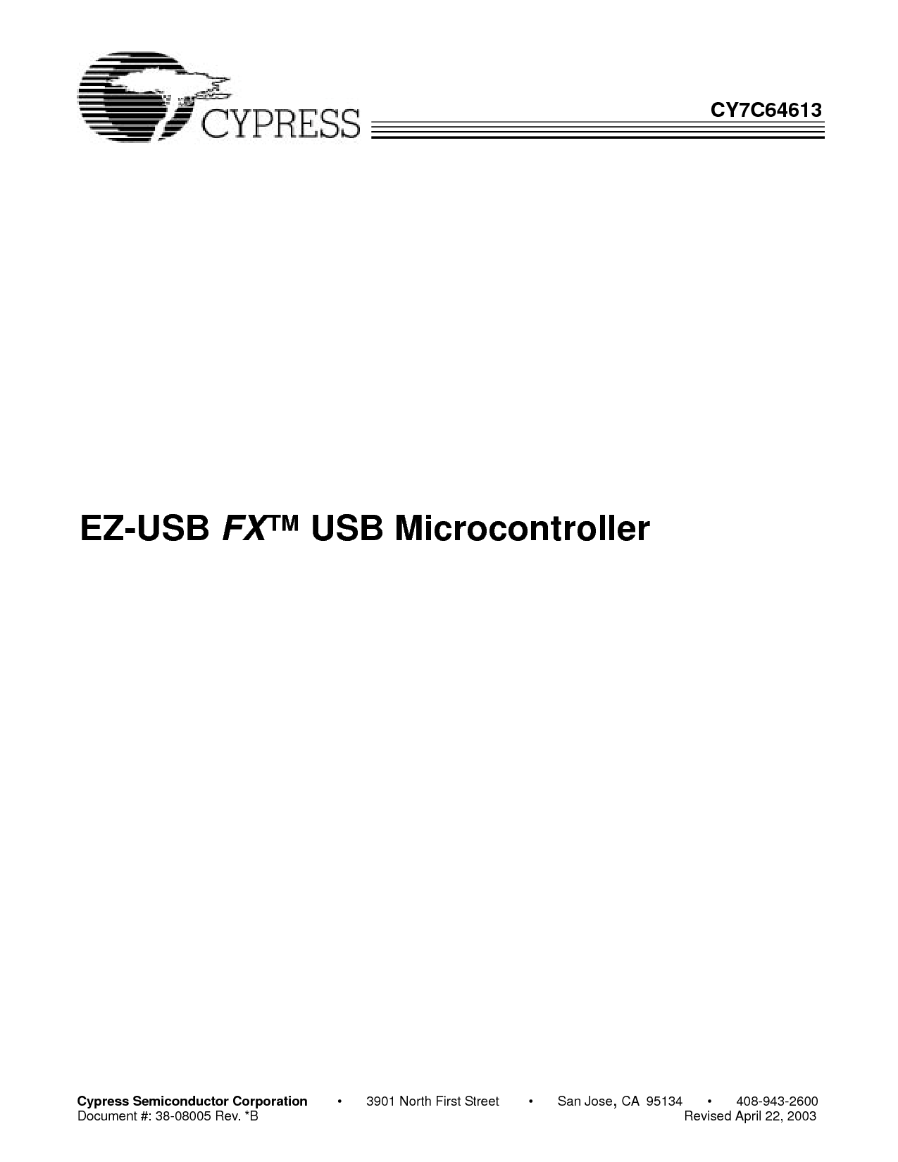 CY7C64613 柏树 半导体 公司 • 3901 北 第一 街道 • San Jose , ca 95134 • 408-943-2600 文件 #: 38-08005 rev. *b 修订 april 22, 2003 ez-usb 外汇 ™ usb 微控制器 | |