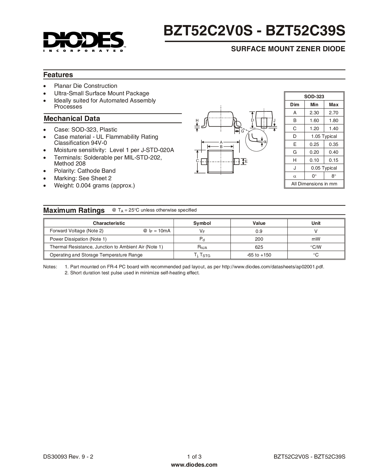 ds30093 rev. 9 - 2 1 的 3 bzt52c2v0s - bzt52c39s