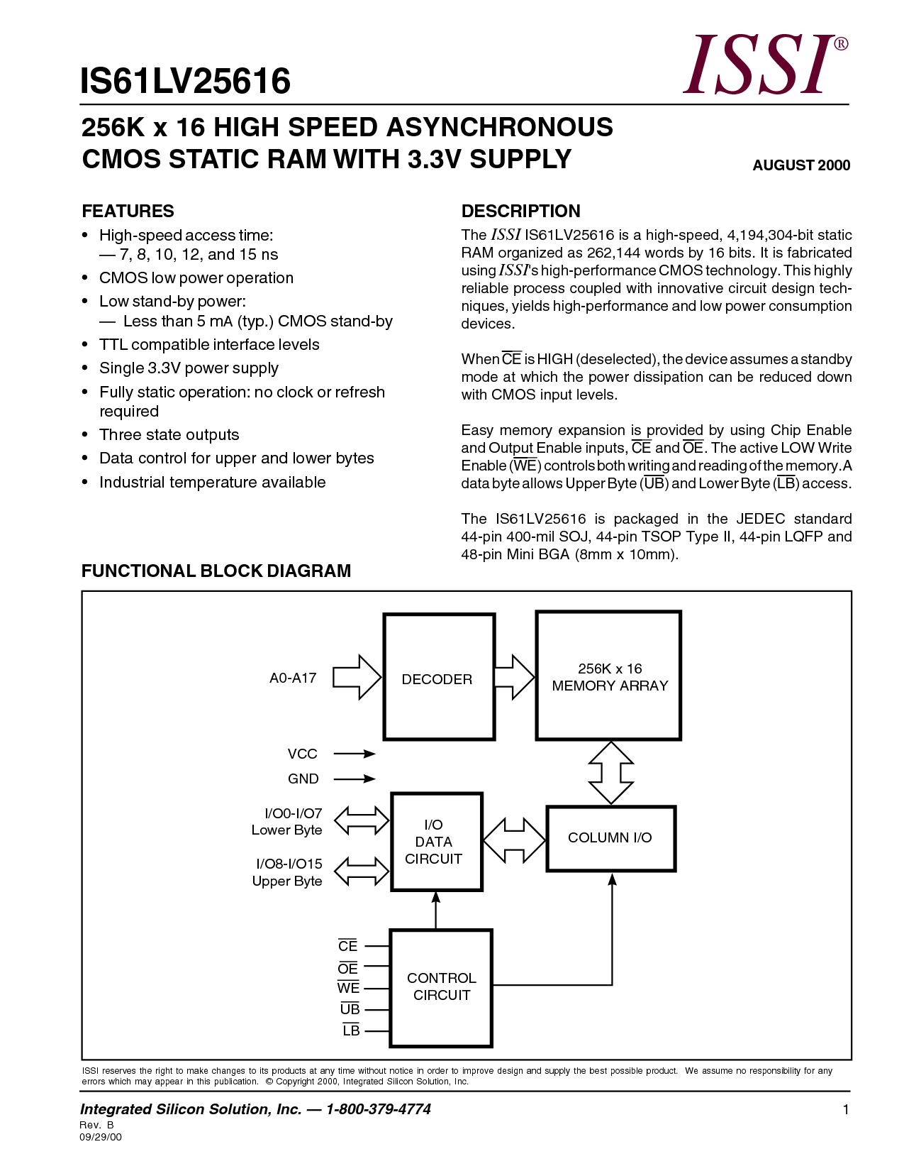 issi 储备金 这 右侧 至 制造 变更 至 其 产品 在 任何 时间 无 通知 入点 订单 至 改善 设计 和 供应 这 最好 可能 产品. 我们 假设 否 责任 用于 任何