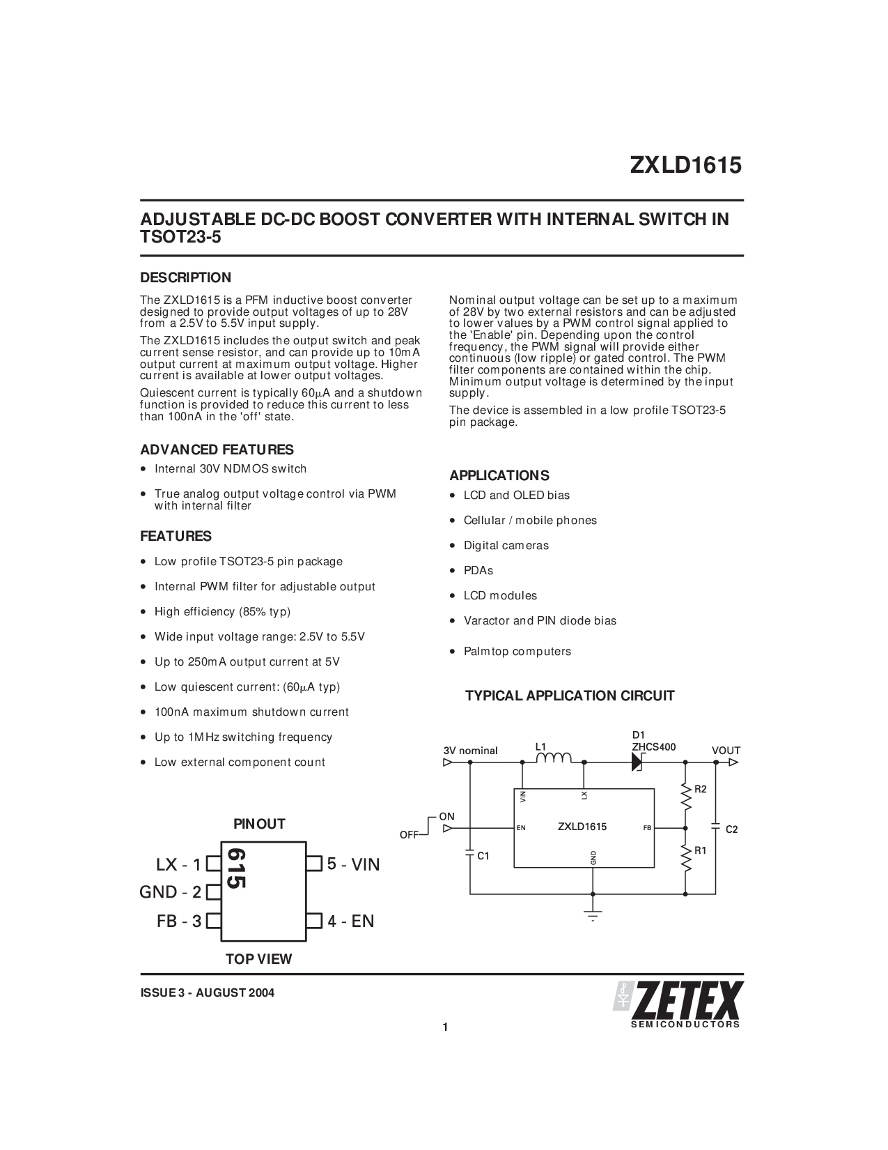 这 zxld1615 包括 这 输出 开关 和 峰值