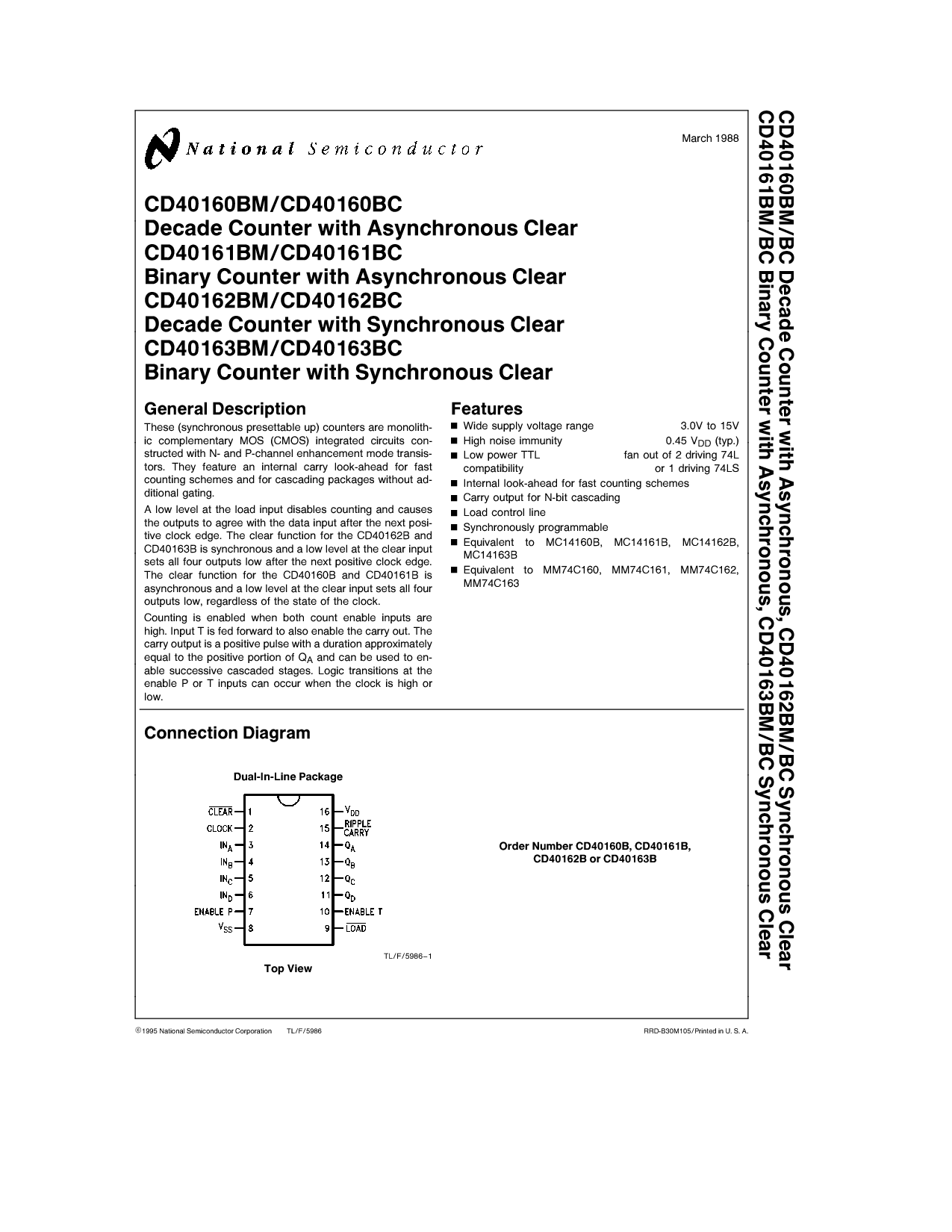 CD40160BMBC 十年 计数器 Asynchronous CD40162BMBC 同步 清除