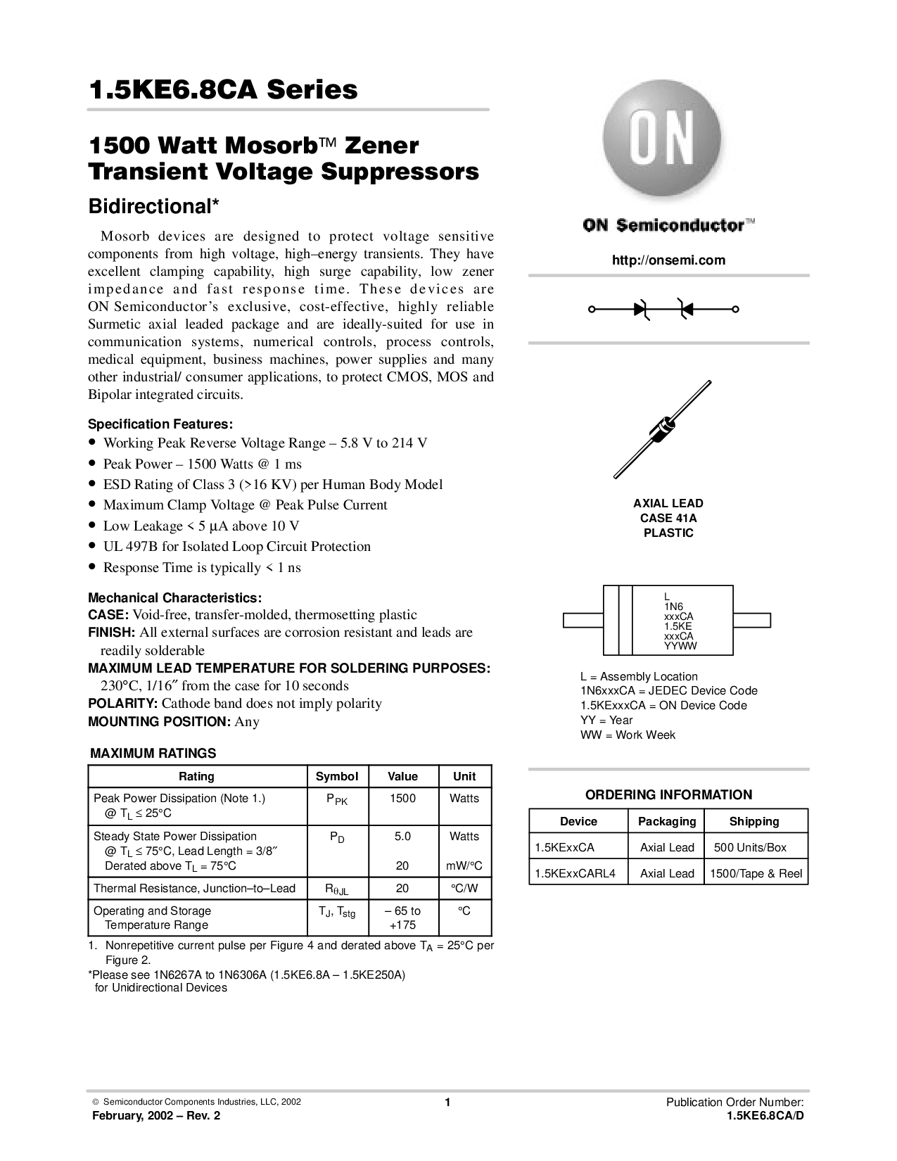 *please 请参见 1n6267a 至 1n6306a (1.5ke6.8a – 1.5ke250a)