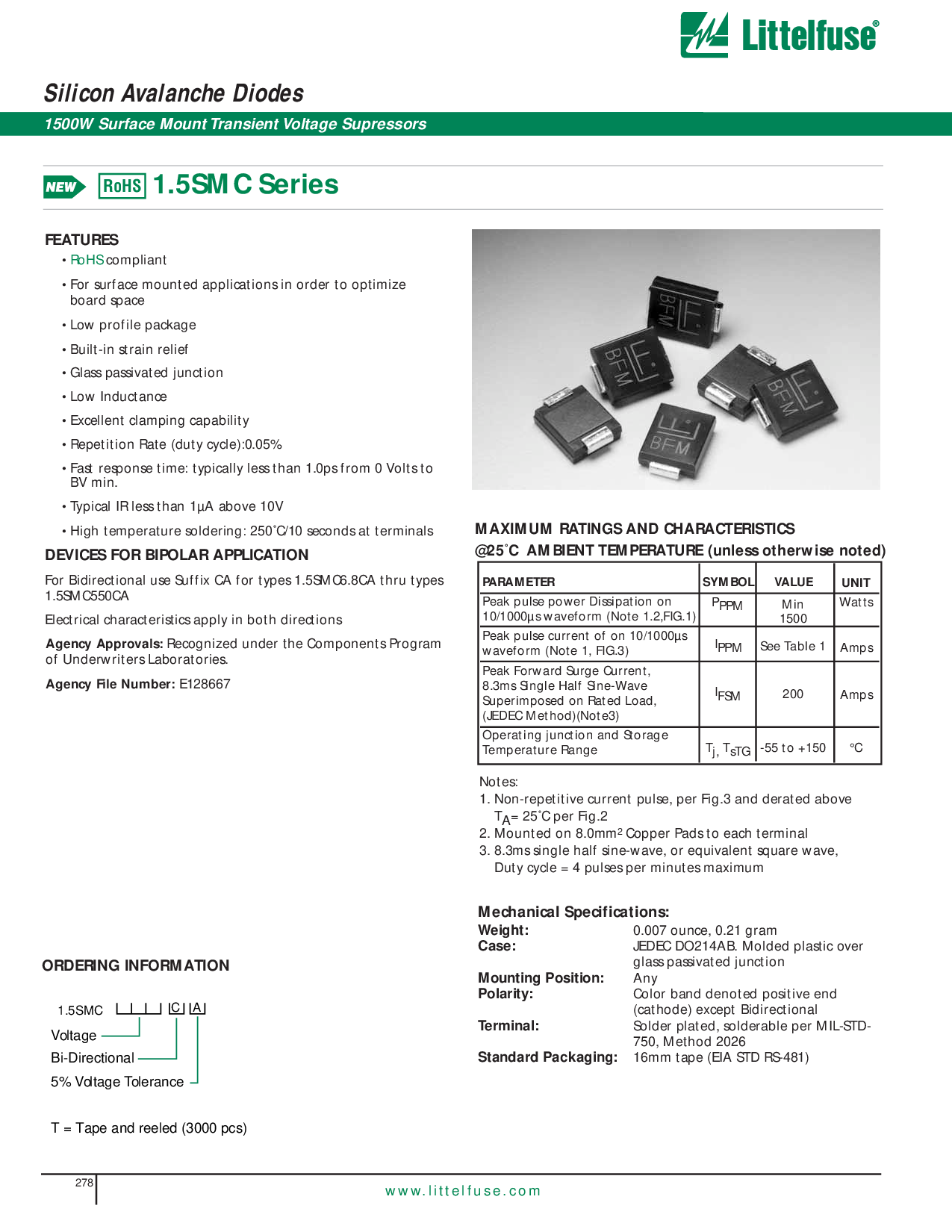 用于 双向 使用 后缀 ca 用于 类型 1.5smc6.8ca 直通 类型