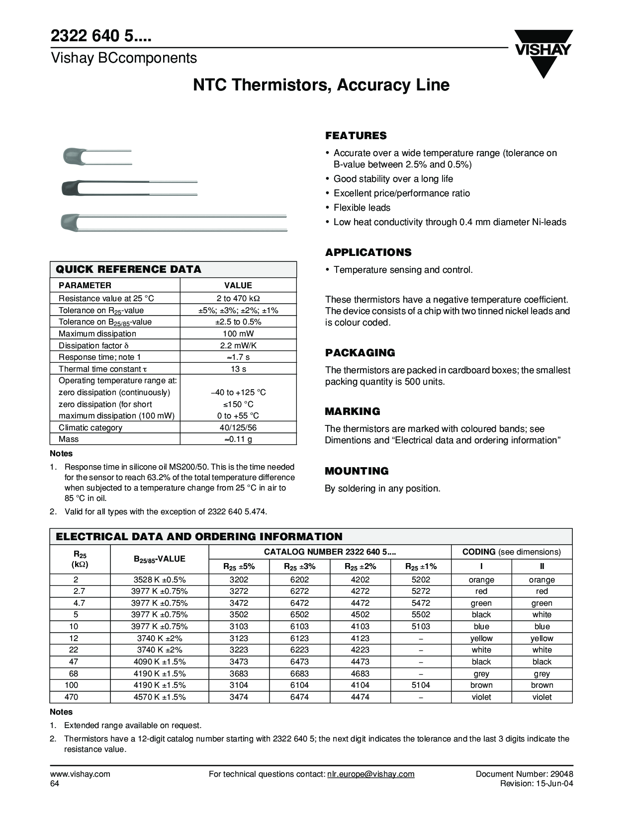 2. 热敏电阻 有 一个 12-数字 目录 号码 起动 与 2322 640 5; 这 下一个 数字 表示 这 公差 和 这 最后一个 3 数字 指示 这