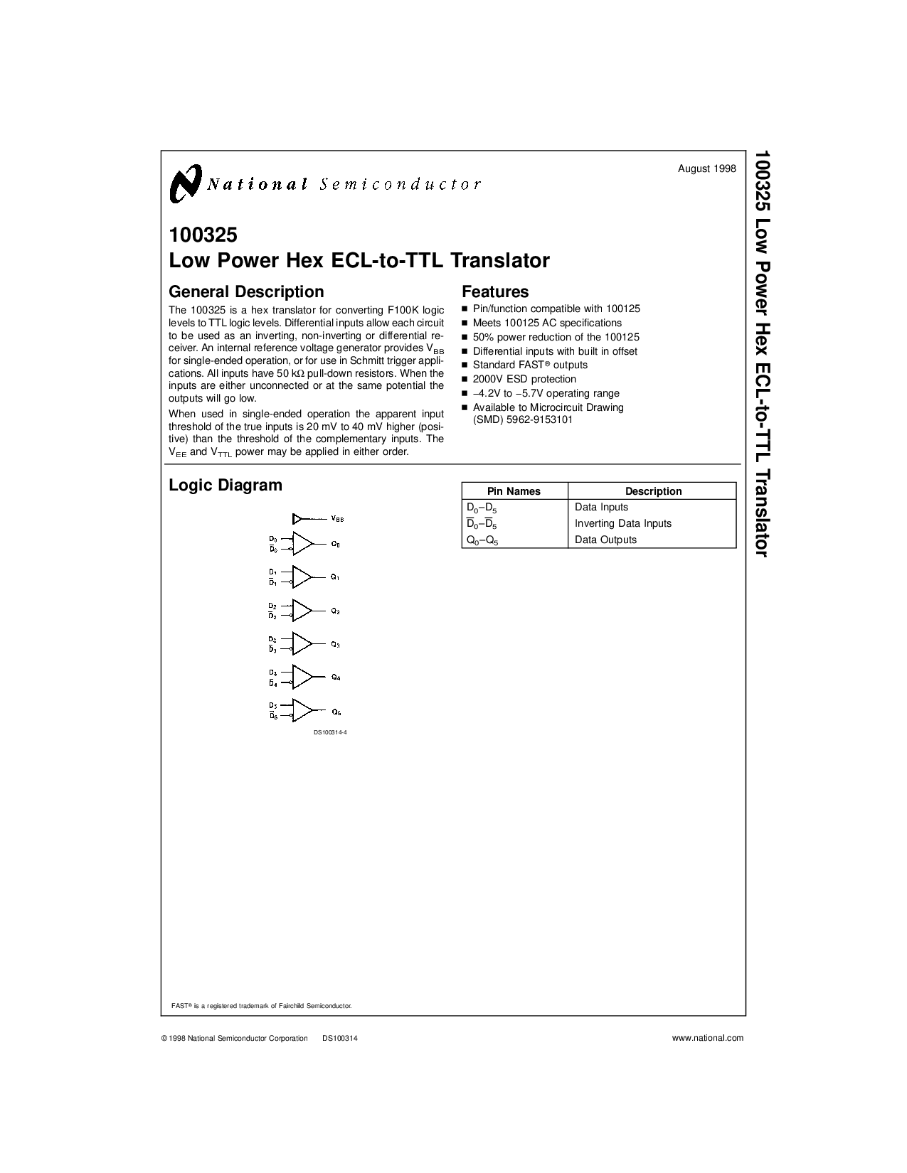 100325 低 电源 十六进制 ecl-至-ttl 翻译器
