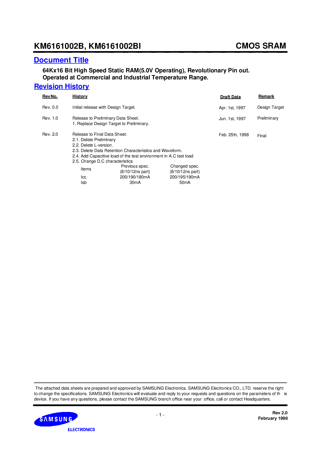 浏览型号KM6161002B-10的Datasheet PDF文件第2页