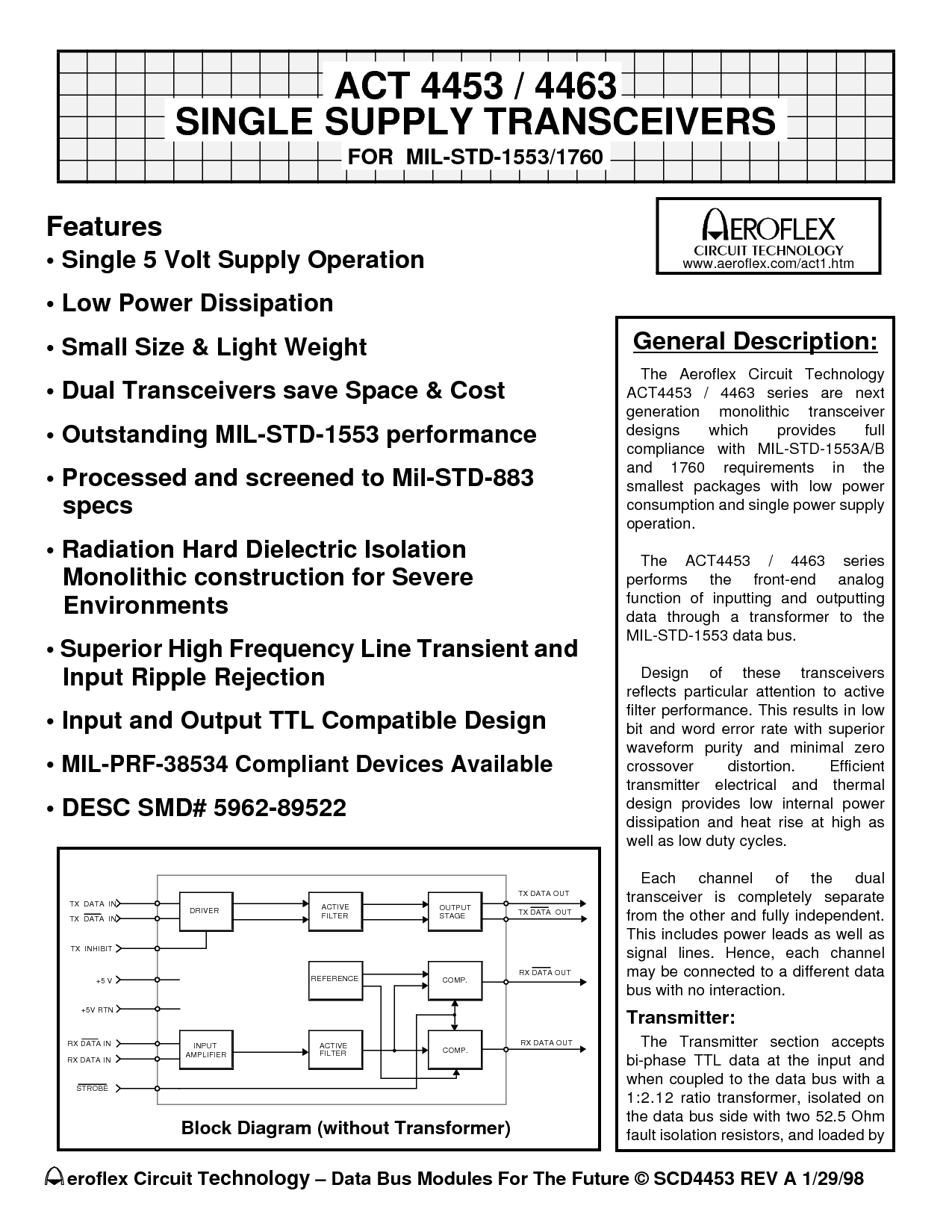 ACT 4453 / 4463 SINGLE SUPPLY TRANSCEIVERS FOR MIL-STD-1553/1760