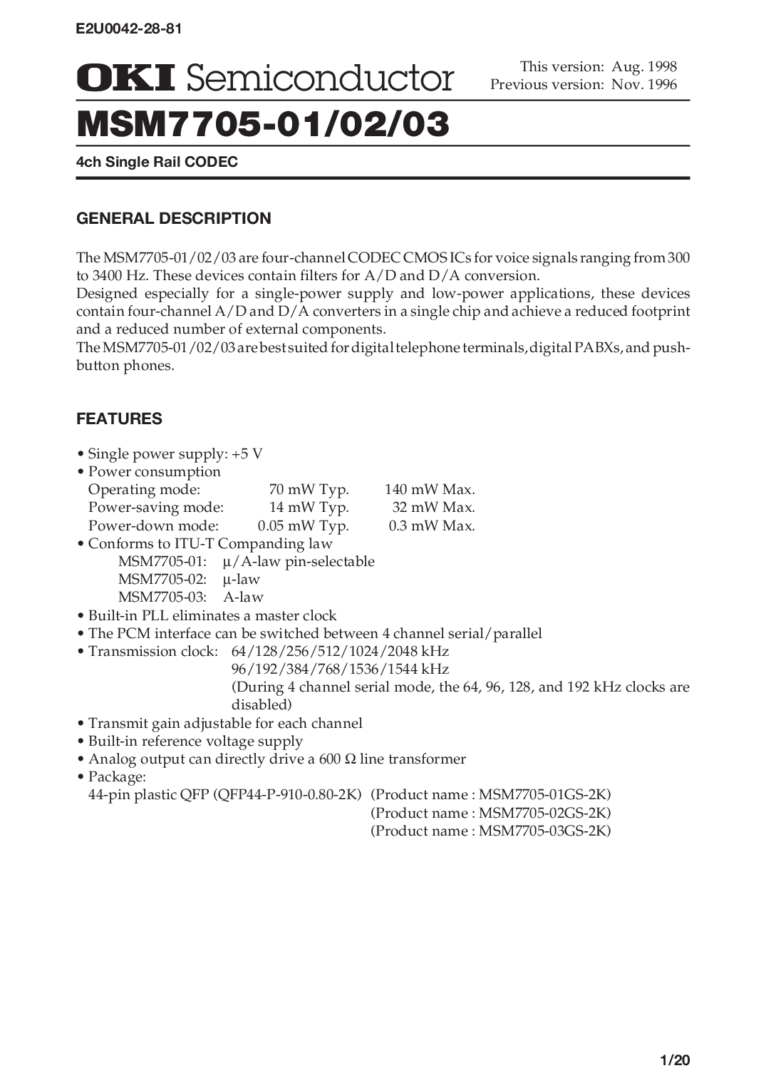这 msm7705-01/02/03 是 四通道 编解码器 cmos ics 用于 语音 信号 测距 从 300