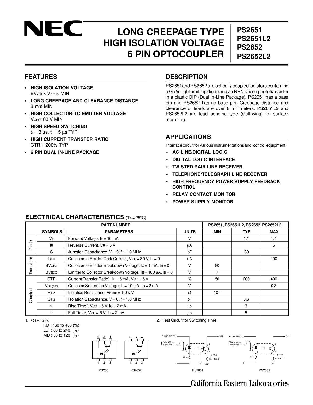 零件 号码 ps2651, ps2651l2, ps2652, ps2652l2