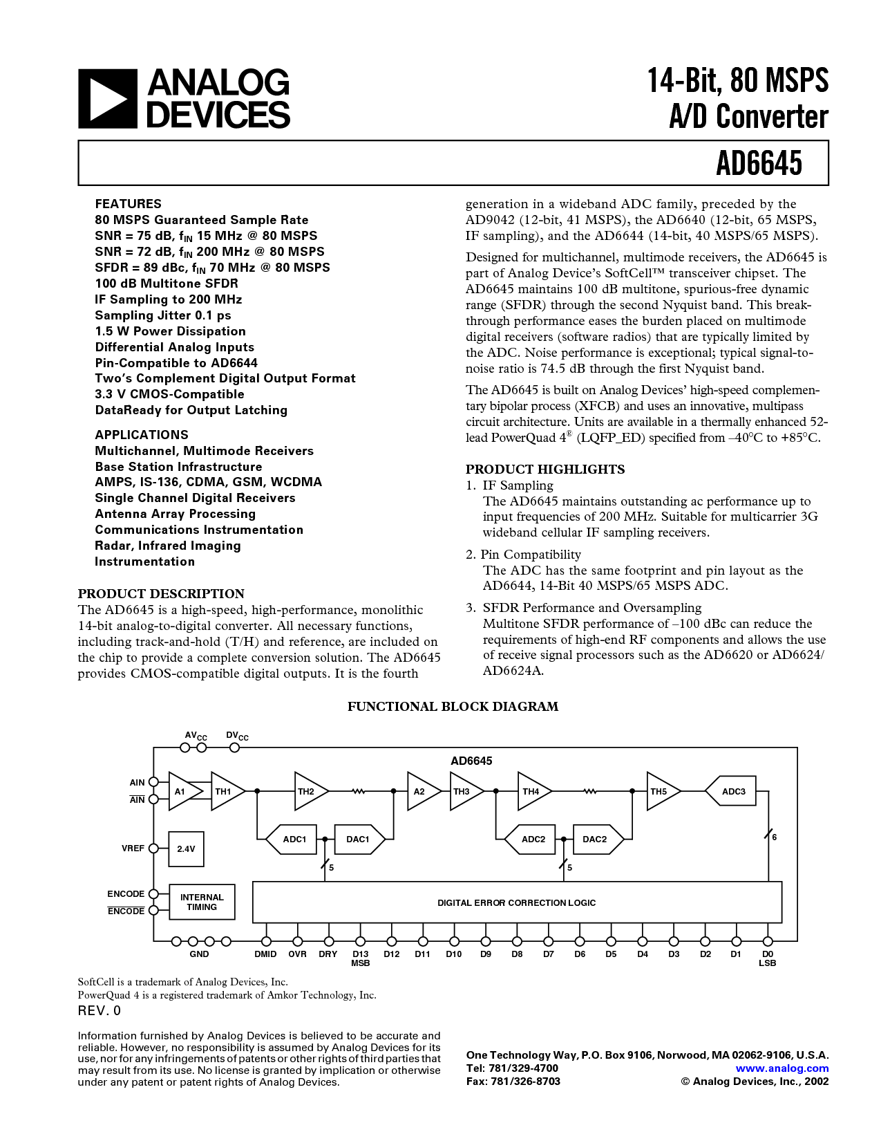 浏览型号AD6645/PCB的Datasheet PDF文件第2页