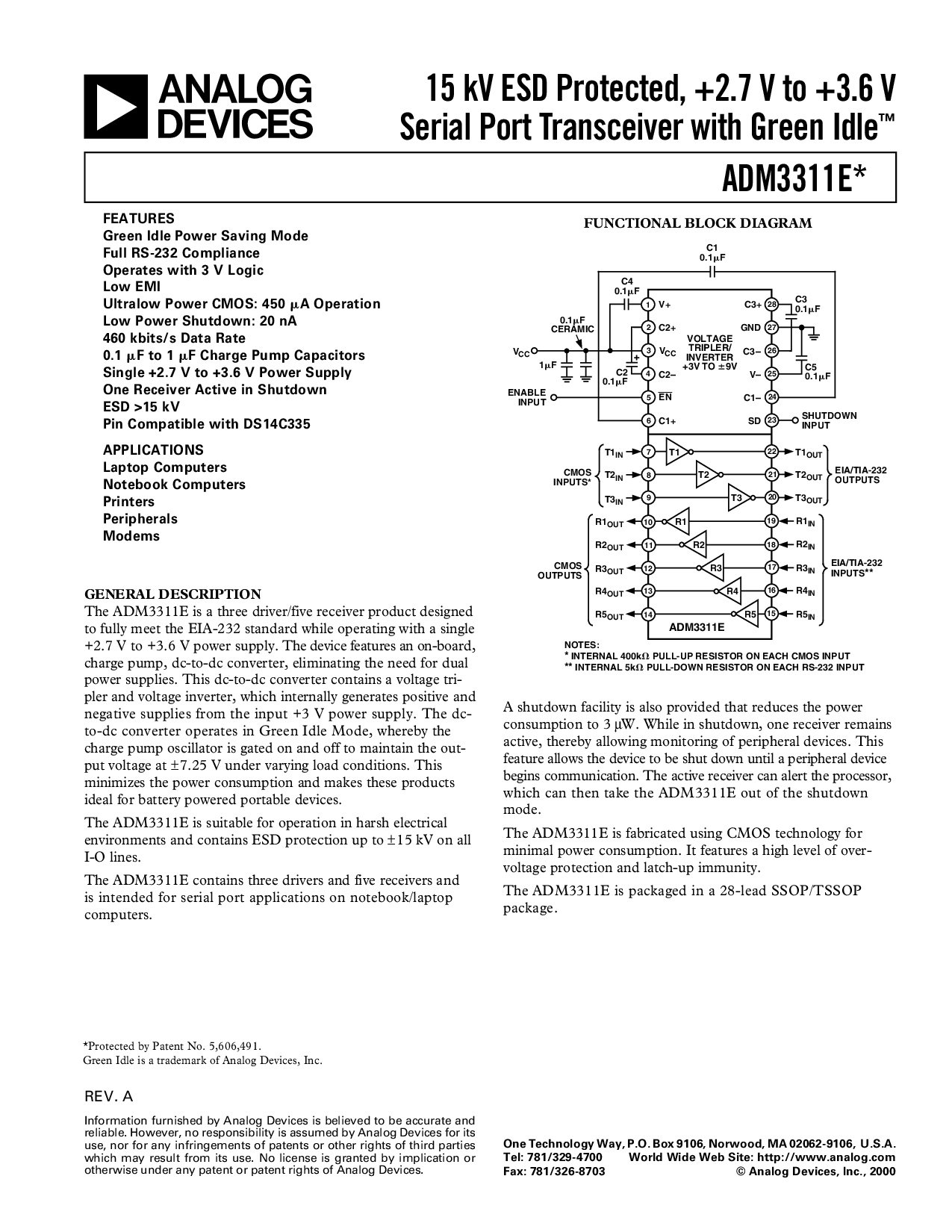 这 adm3311e 是 一个 三个 驾驶员/五个 接收器 产品 设计