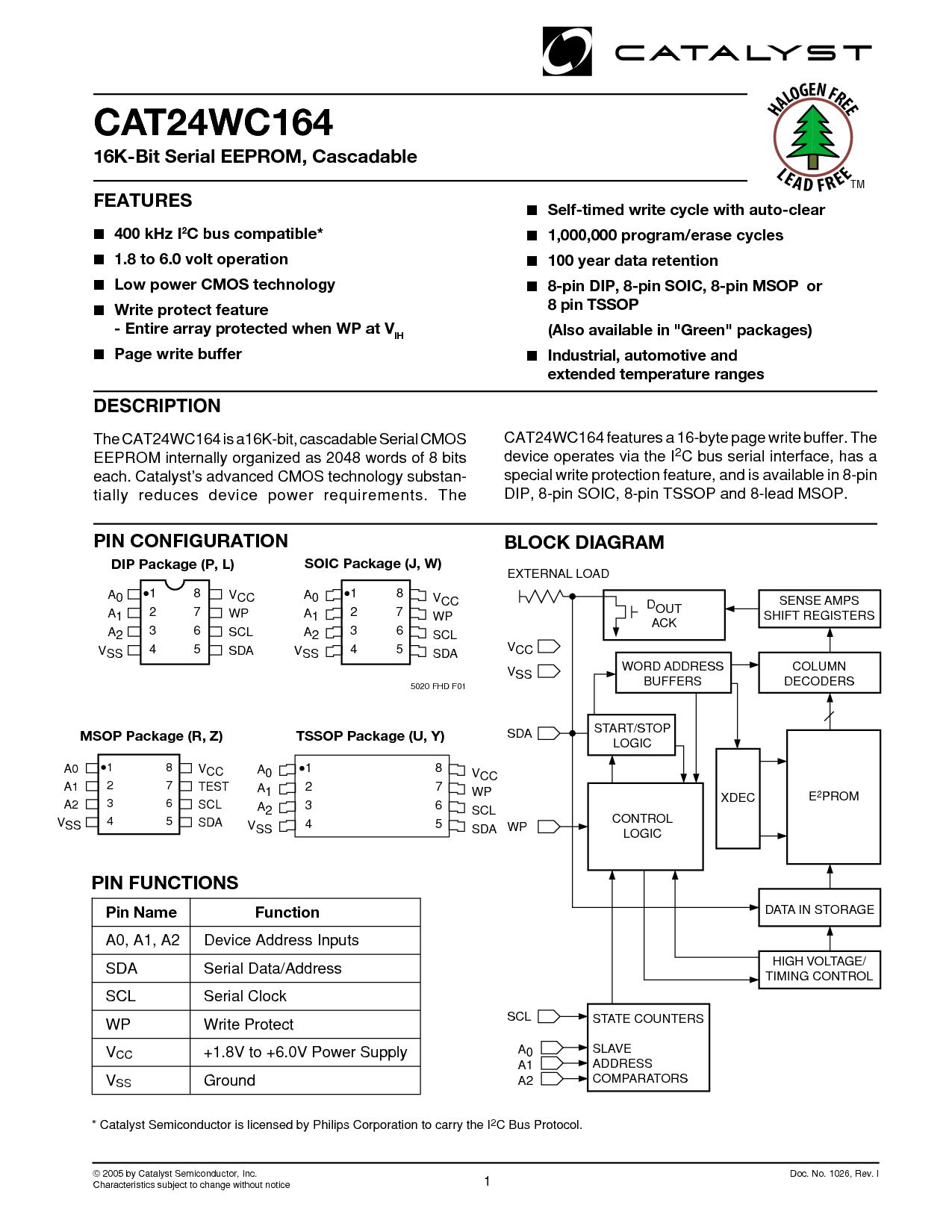 浏览型号CAT24WC164KA-TE13的Datasheet PDF文件第2页