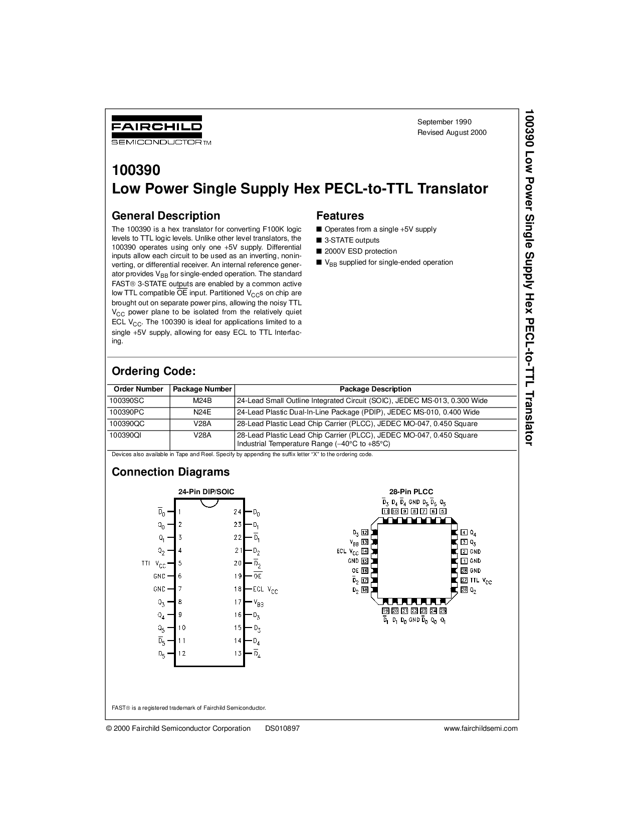 100390 低 电源 单独 供应 十六进制 pecl-至-ttl 翻译器
