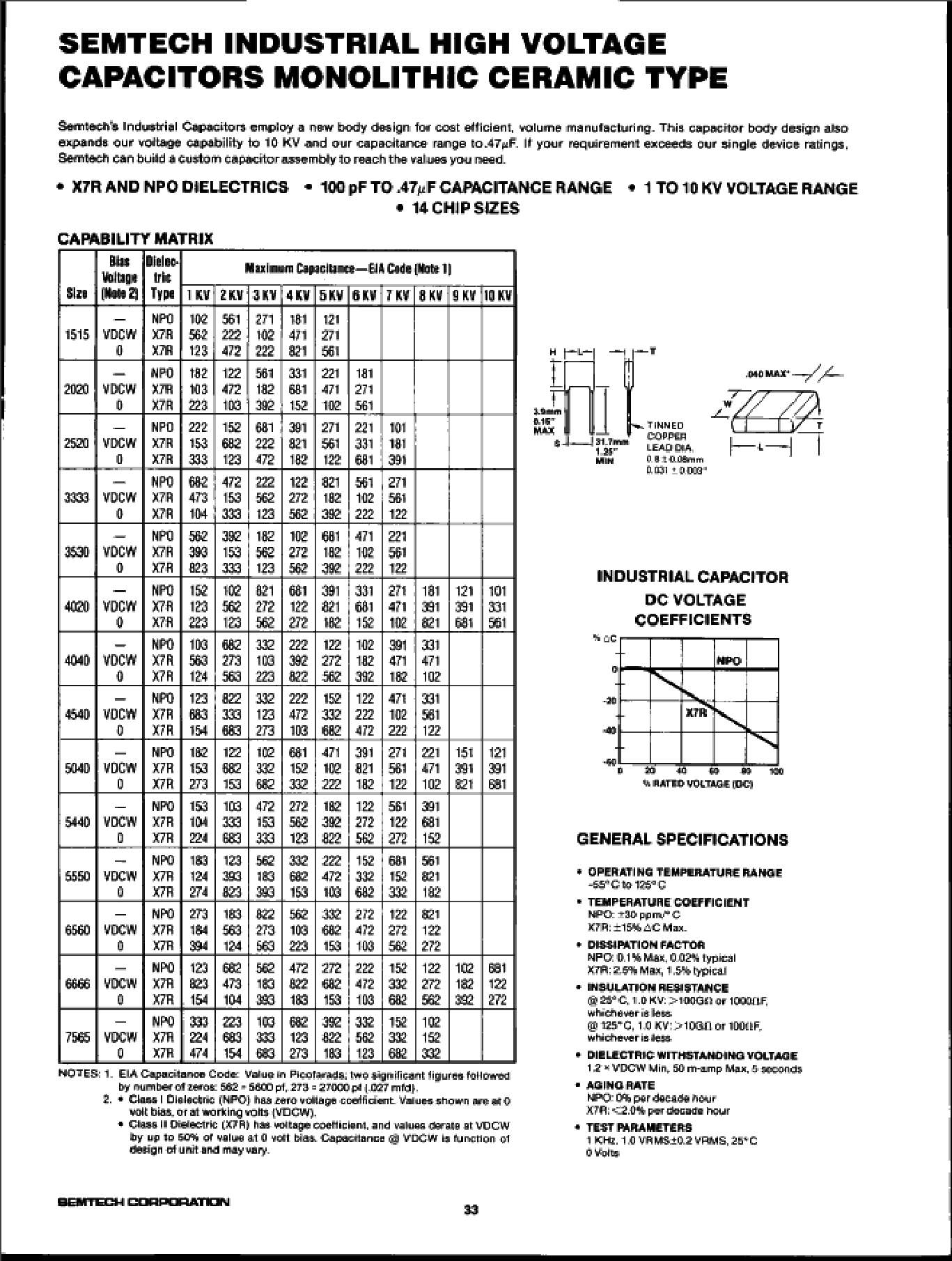 HIGH VOLTAGE CAPACITORS MONOLITHIC CERAMIC TYPE