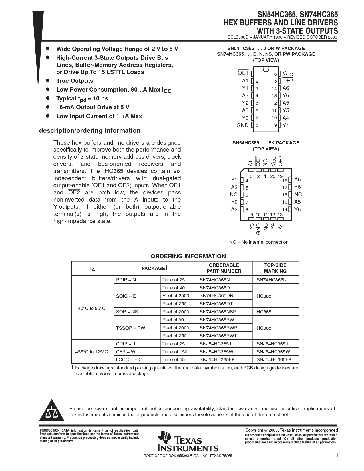 sop − ns 卷轴 的 2000 SN74HC365NSR HC365