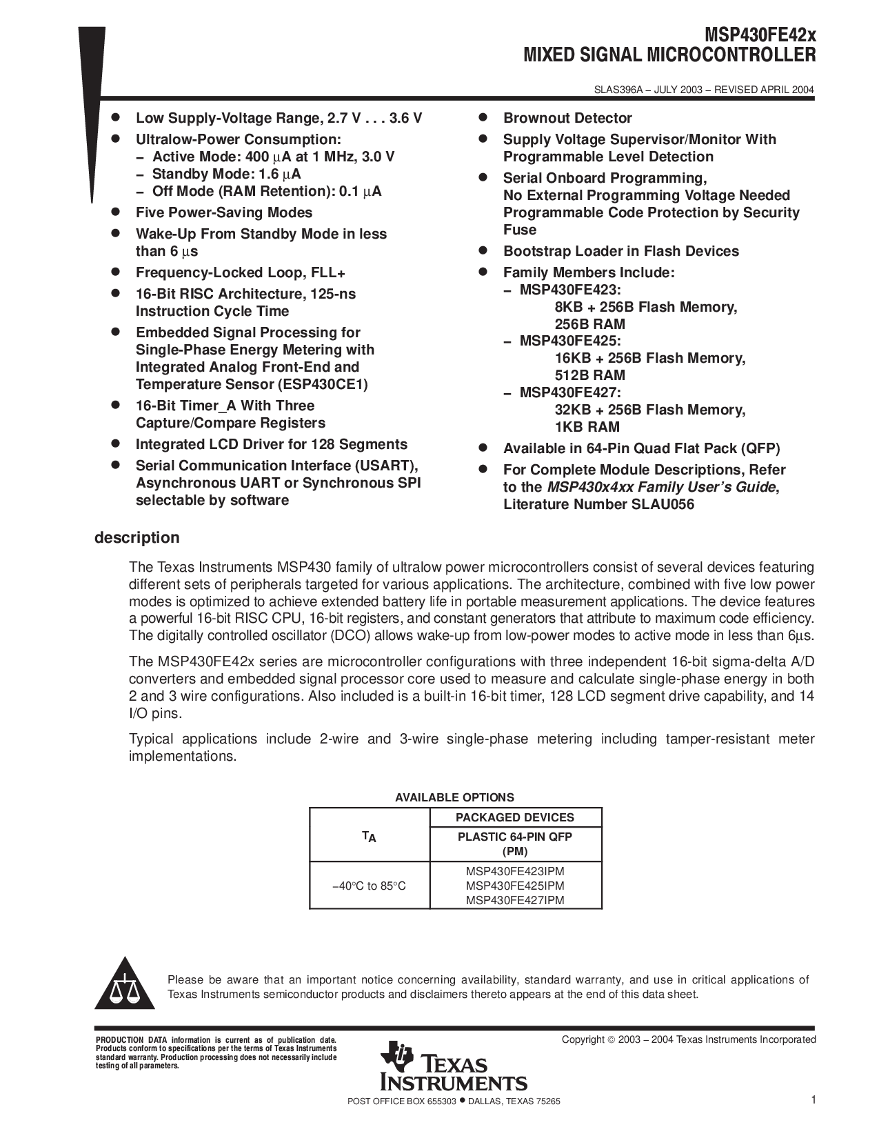 浏览型号MSP430FE423的Datasheet PDF文件第4页