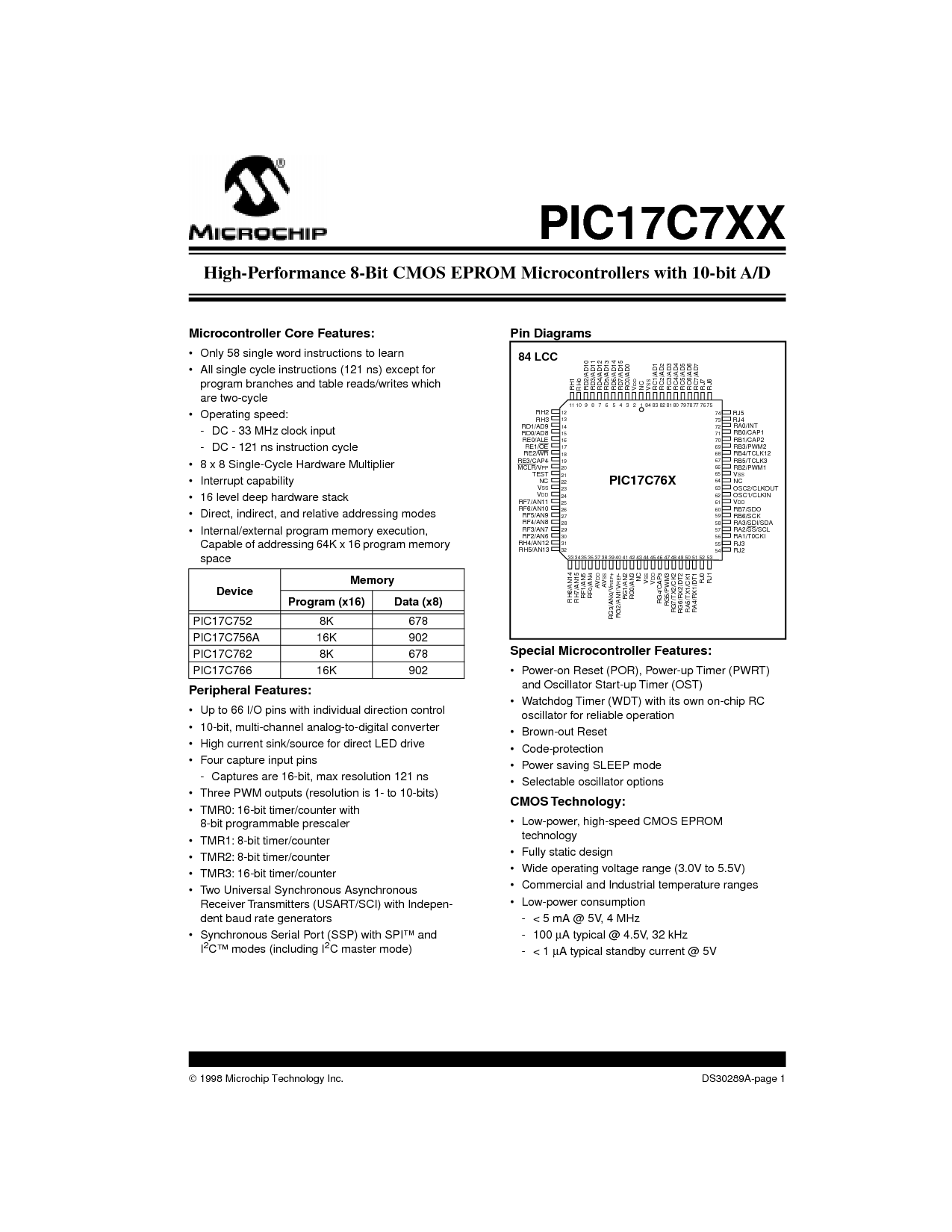 浏览型号PIC17C766-16/CL的Datasheet PDF文件第3页